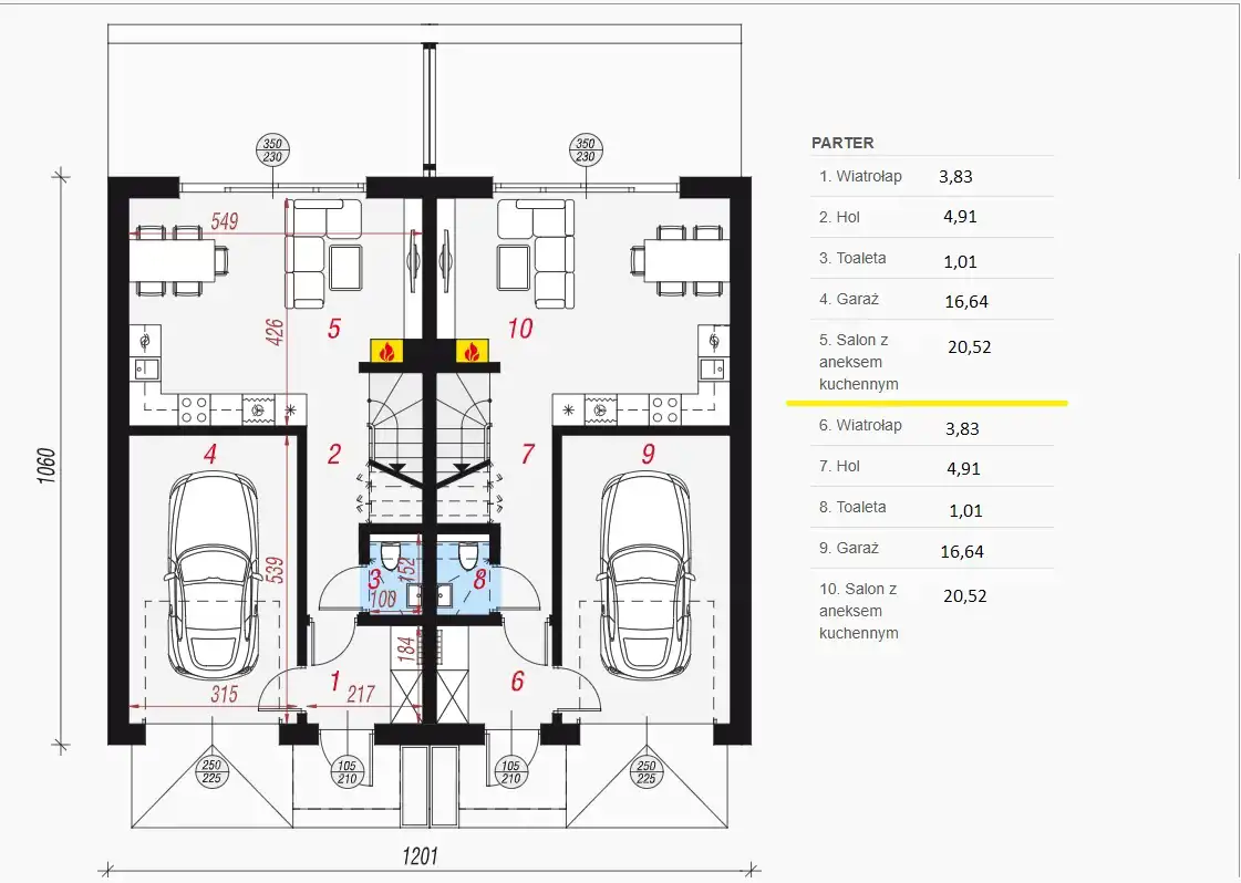 • 2 lokale mieszkalne w zabudowie bliźniaczej.