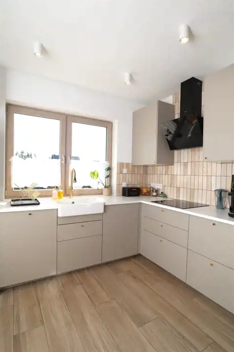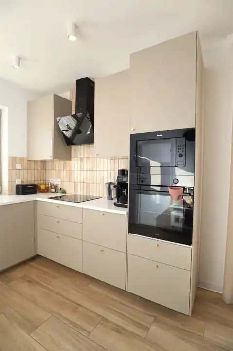 - kuchnia w zabudowie + AGD w cenie- płyta indukcyjna, pochłaniacz pary, lodówko-zamrażalka, piekarnik, mikrofalówka, zmywarka,