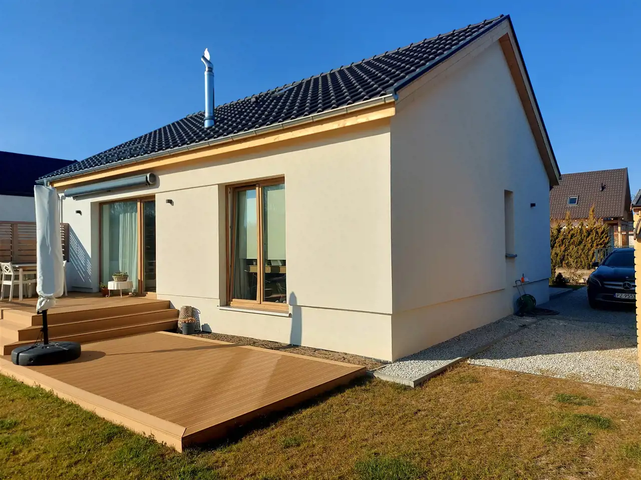Polecamy do sprzedaży atrakcyjny dom znajdujący się w Sławicy w gminie Skoki. Dom o powierzchni 73 m2 położony jest na działce o powierzchni 1003 m2. W budynku znajdują się następujące pomieszczenia : salon z kuchnią o powierzchni 32,8m2, dwie sypialnie ( 13,3 m2, 8,95 m2), łazienka 4,70m2, toaleta 1,7 m2, pomieszczenie gospodarcze oraz pralnia 2,45m2, korytarz 8,45m2. Przy domu znajduje się budynek gospodarczy o powierzchni 6 m2. Budynek wykonany z bardzo dobrych materiałów, w nowoczesnym stylu, z dbałością o szczegóły. Dom posiada ogrzewanie pompą ciepła ( grzanie/chłodzenie ) sterowaną z aplikacji, dodatkowo zainstalowano kominek. Brama wjazdowa automatyczna, Dom jest domem całorocznym zbudowanym według nowoczesnych wymogów; izolacja na ścianach 20 cm, na suficie 30 cm. Bardzo atrakcyjna lokalizacja, blisko do jeziora, lasu, w pobliżu dobra infrastruktura; łatwy dostęp do poczty, sklepów i komunikacji. Prowadzimy pełną obsługę związaną z uzyskaniem kredytów hipotecznych na zakup nieruchomości.