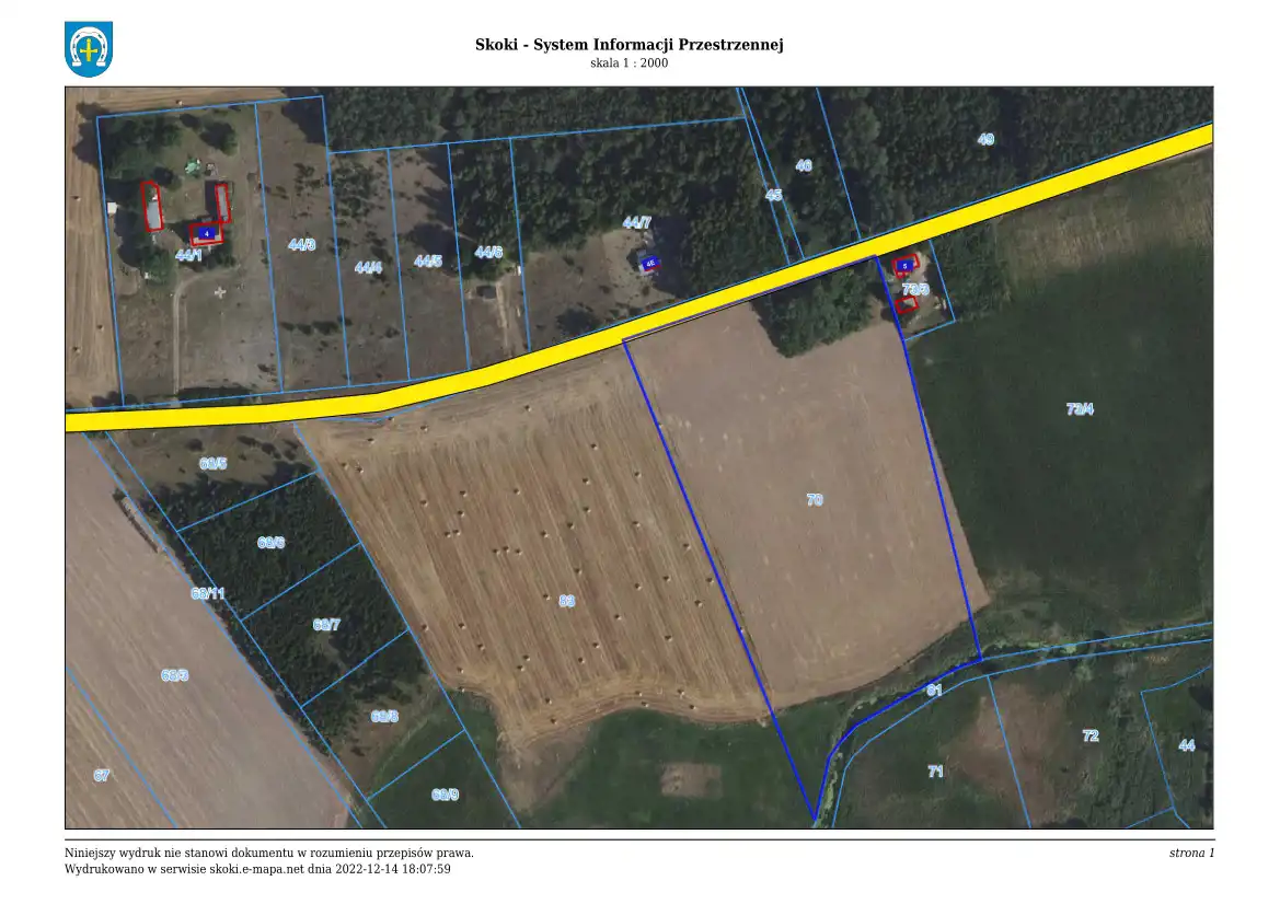 Działka o powierzchni 2.2400 ha, znajdująca się koło Skoków w miejscowości Bliżyce-Wysoka.