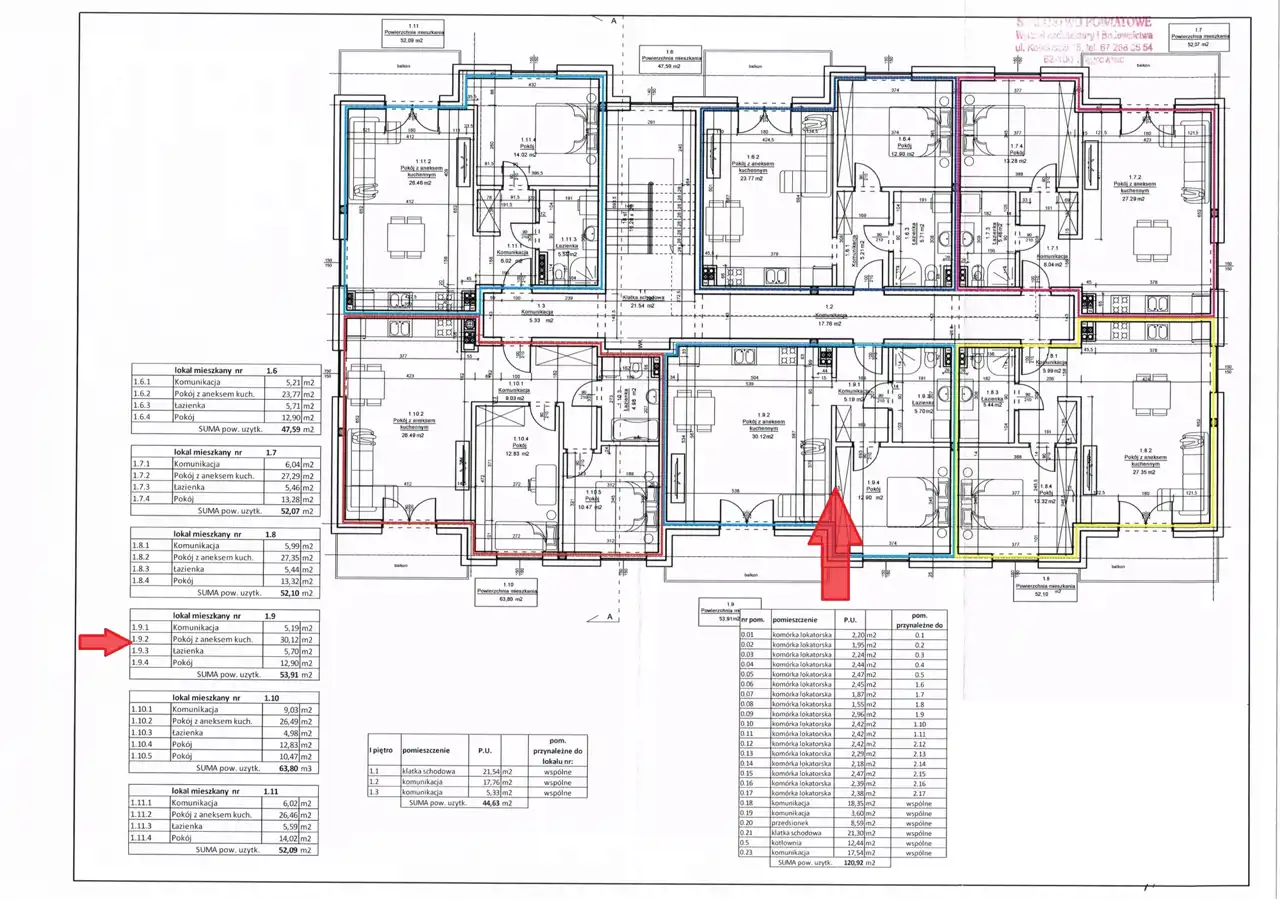 Do mieszkania przynależy komórka lokatorska o pow. 2,96 m2.