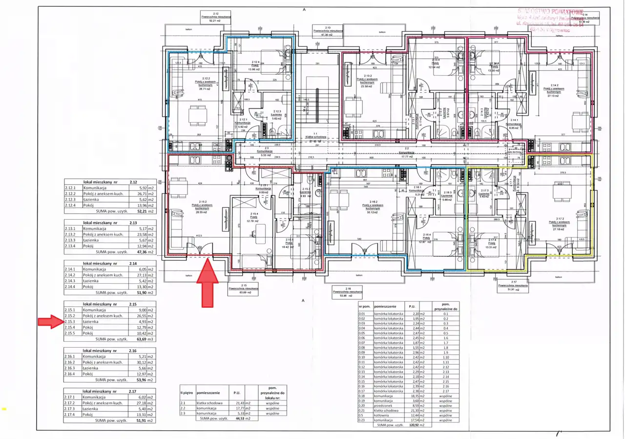 Do mieszkania przynależy komórka lokatorska o pow. 2,47 m2.