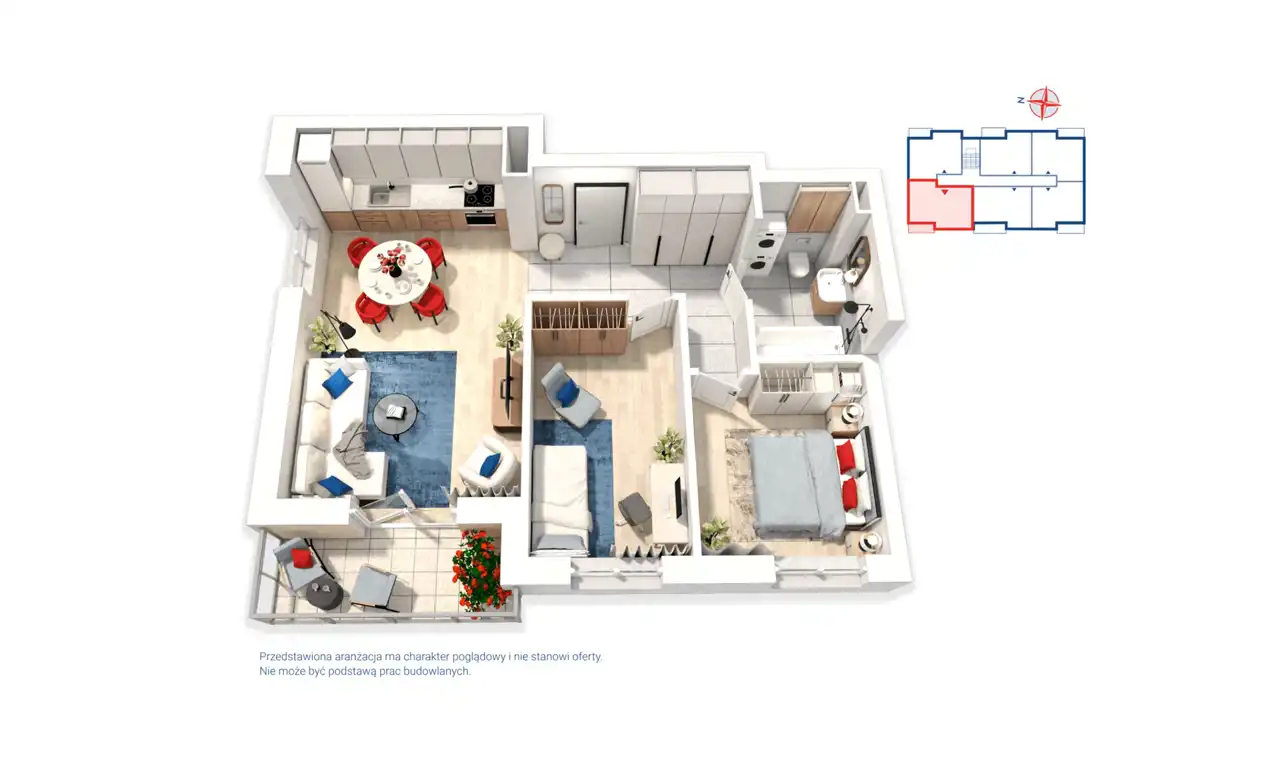 - Charakterystyka mieszkania 63.69 m2, 3 pokoje