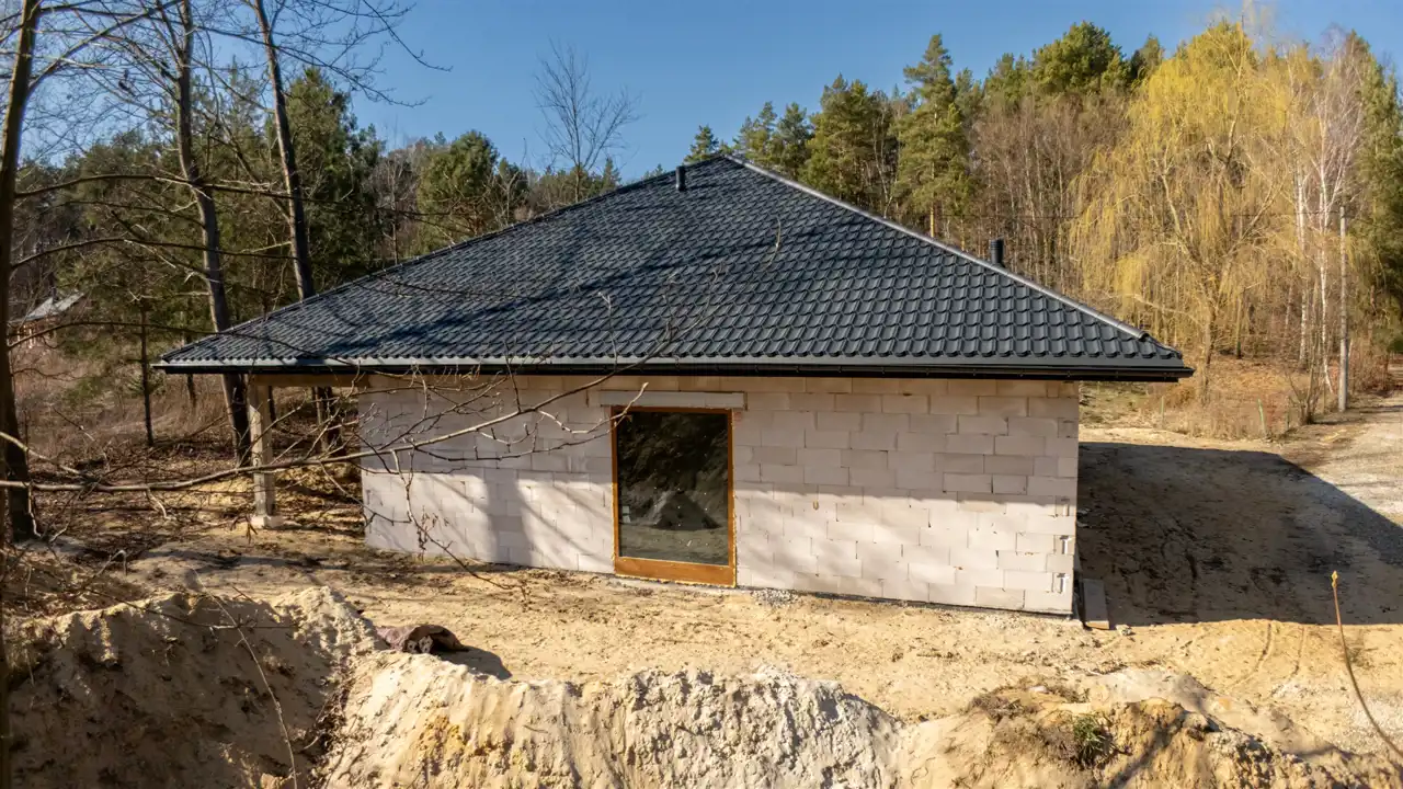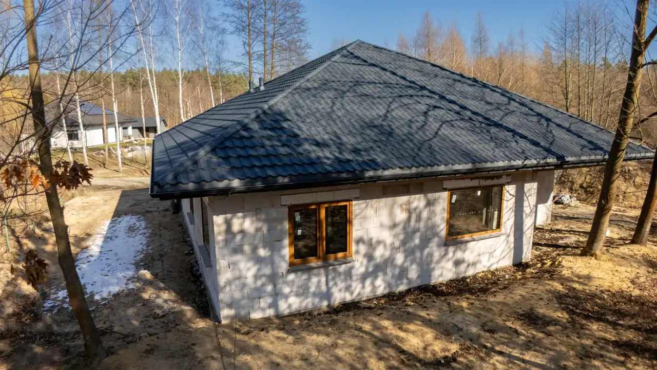 - Dach kryty blachodachówką w kolorze antracytowym,