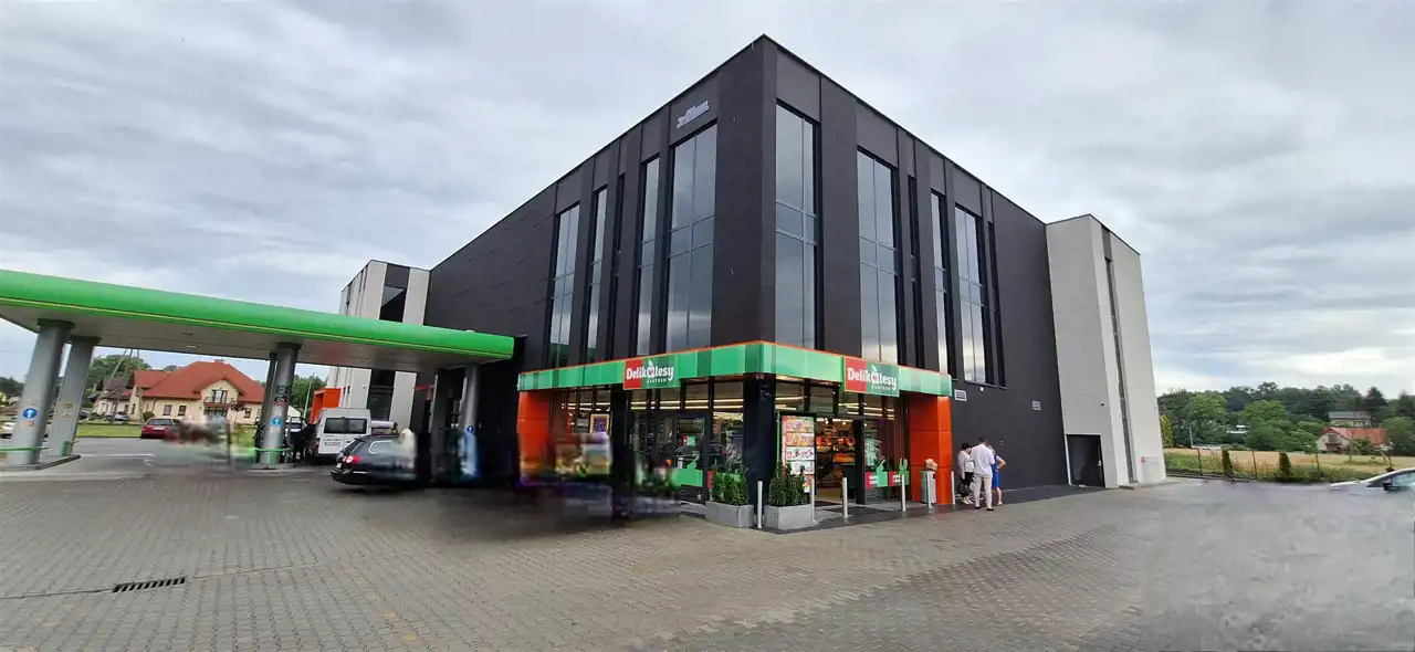 Obiekt nowoczesny o wysokim standardzie, od frontu duże witryny, okna, przy budynku własny parking na ok. 60 aut.