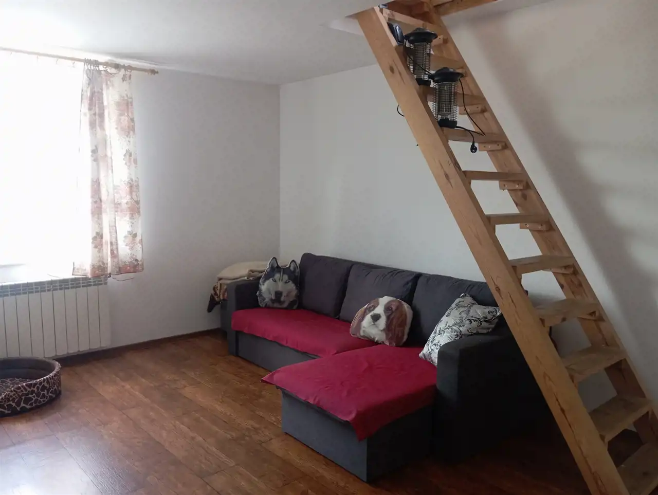 - pokój dzienny z wygodnym dostępem na poddasze. Wejście na poddasze prowadzi schodami drewnianymi znajdującymi się w rogu pomieszczenia. Idealne rozwiązanie na antresolę lub dodatkową przestrzeń do przechowywania.