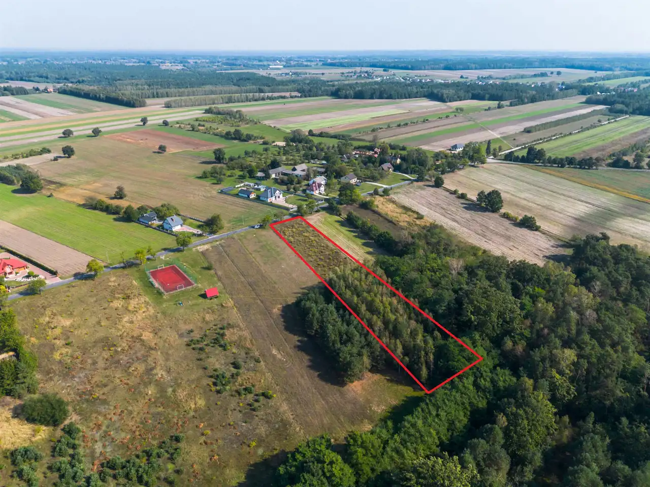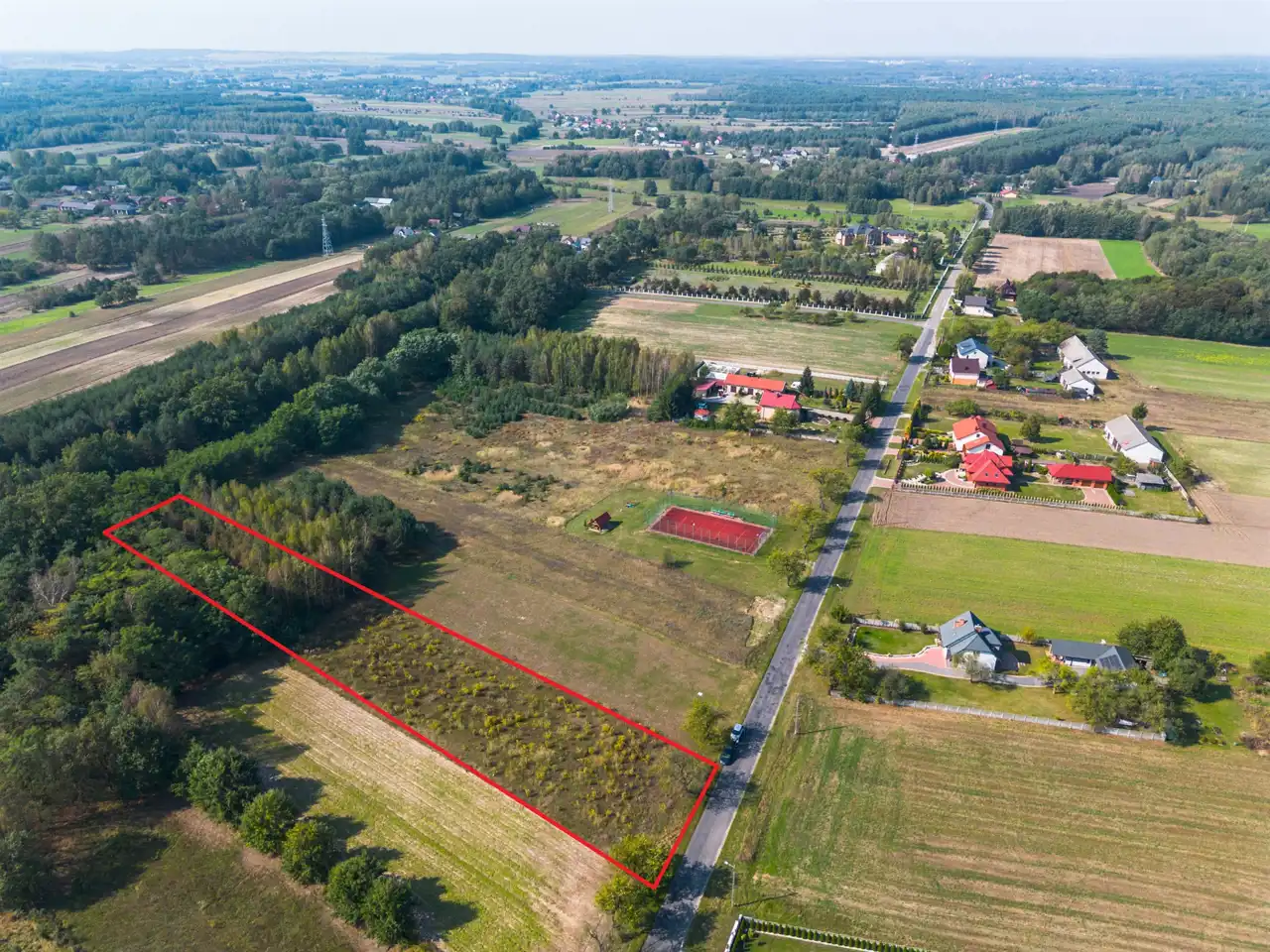 Sąsiedztwo to zabudowa jednorodzinna , las , pola.