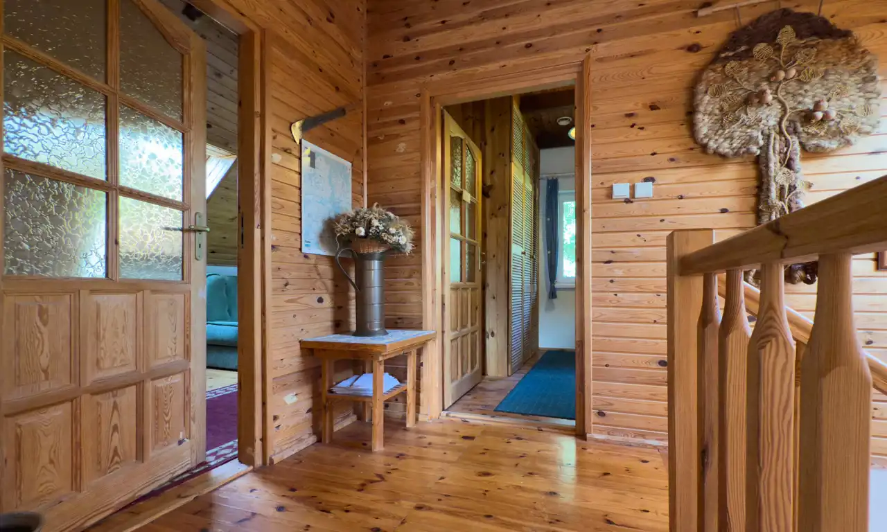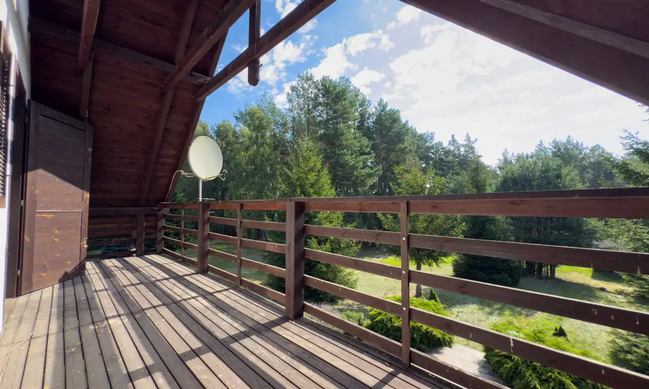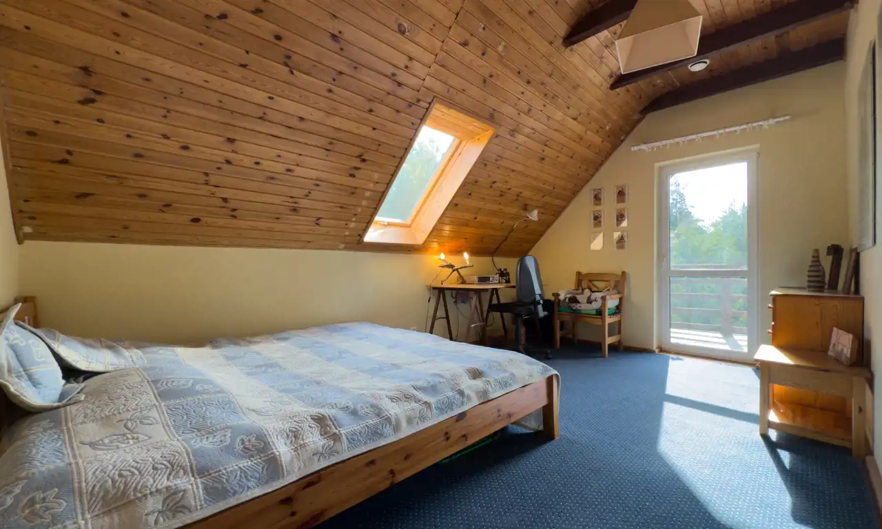 Piętro to cztery sypialnie, a z dwóch z nich można wyjść na zadaszone balkony, gdzie w spokoju odpoczniesz z książką lub filiżanką kawy, podziwiając otaczający las. Dodatkowo dom posiada poddasze, które pełni funkcję praktycznej przestrzeni do przechowywania.