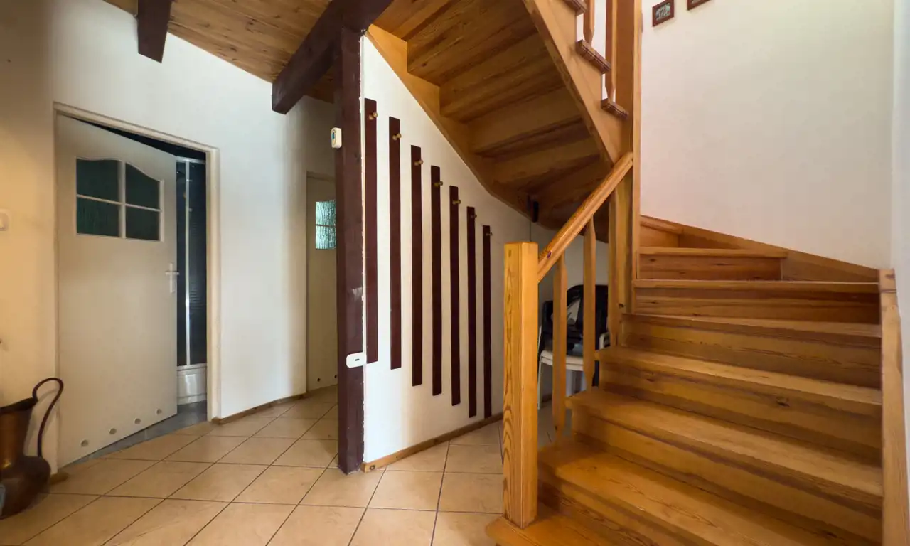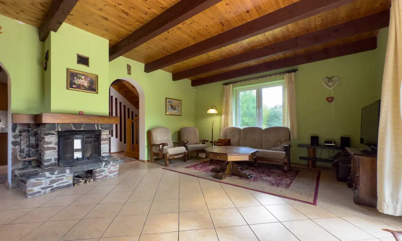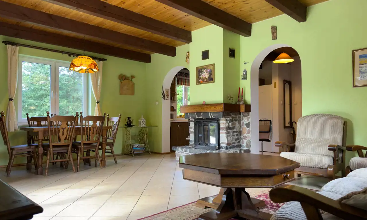 - Ogrzewanie: kominek z rozprowadzeniem ciepła, dodatkowe grzejniki elektryczne w łazience i pomieszczeniu gospodarczym