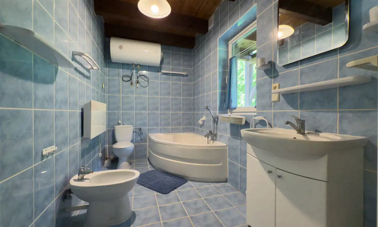 - Woda z własnego ujęcia, ogrzewana bojlerem elektrycznym 80l