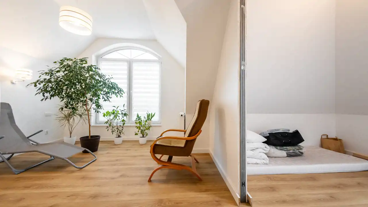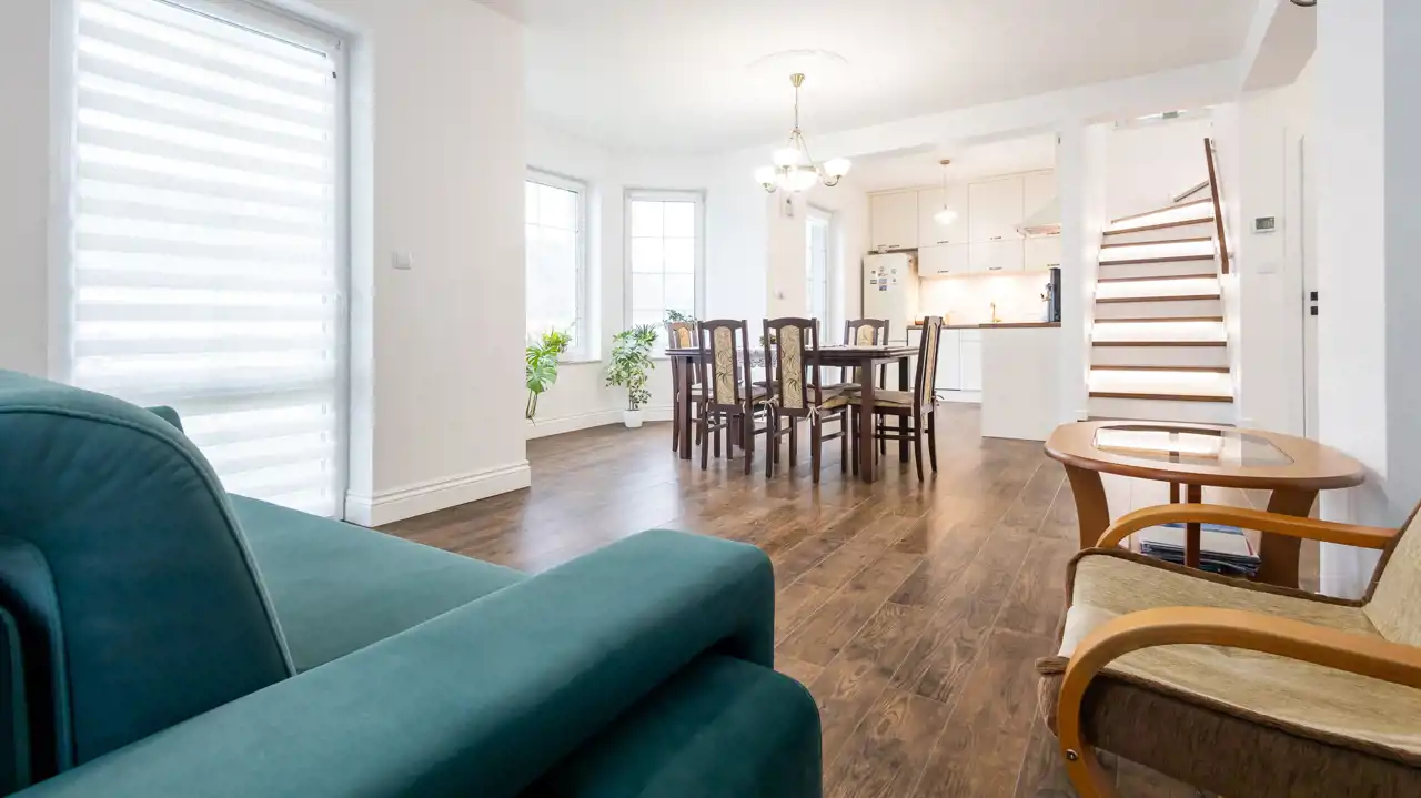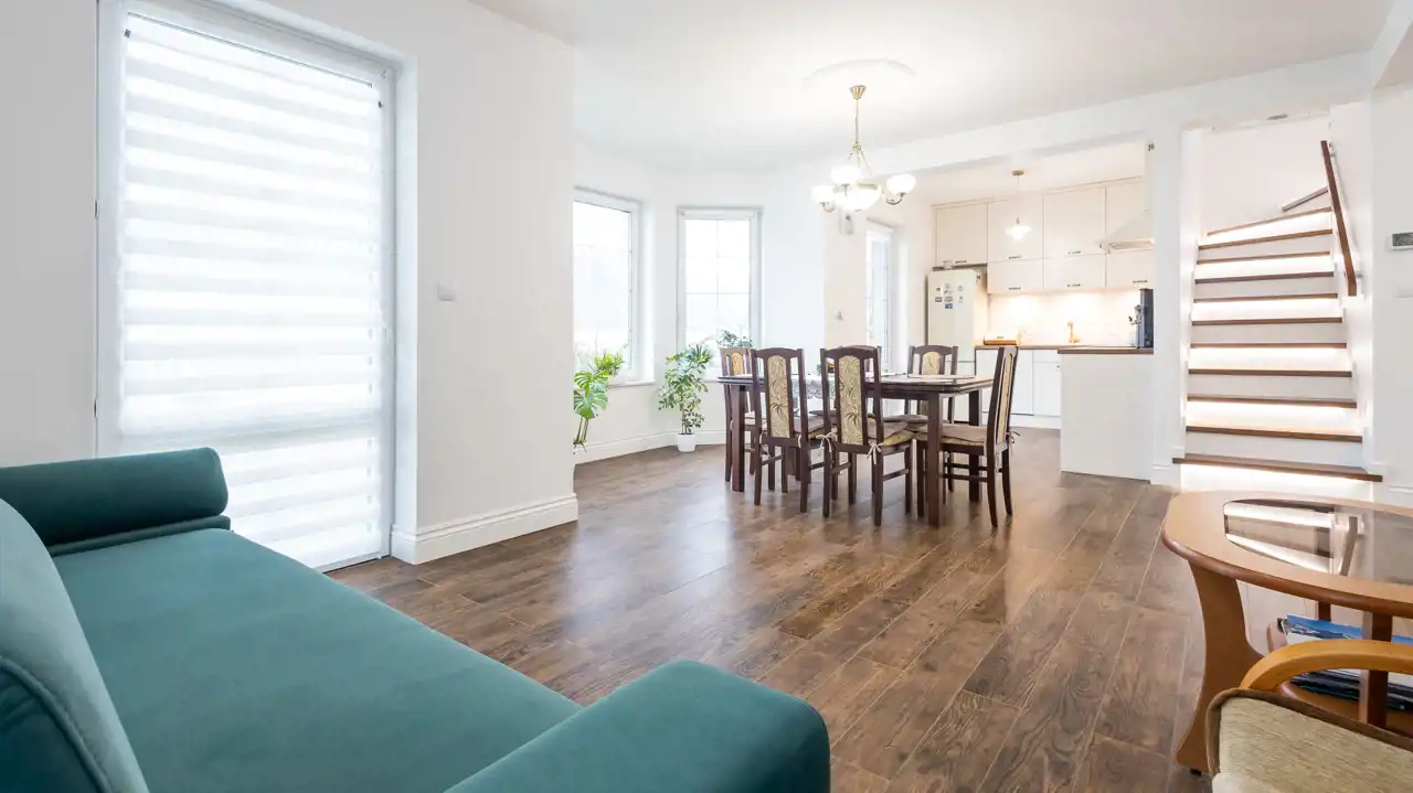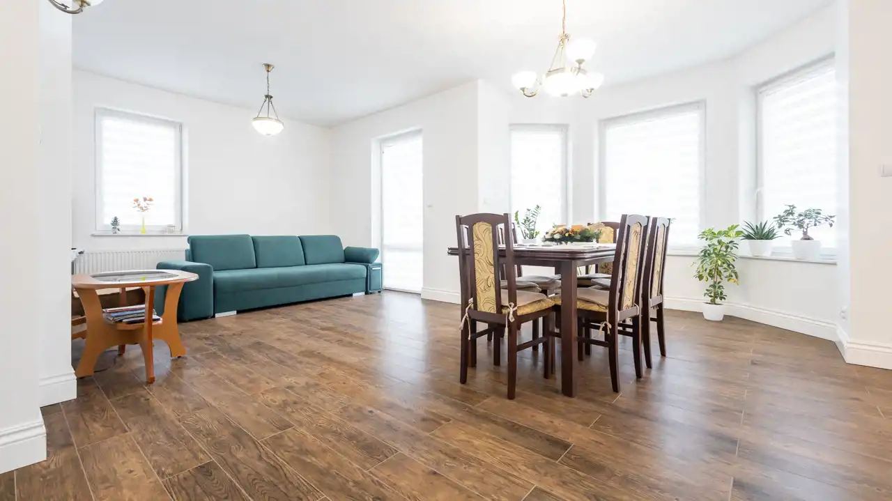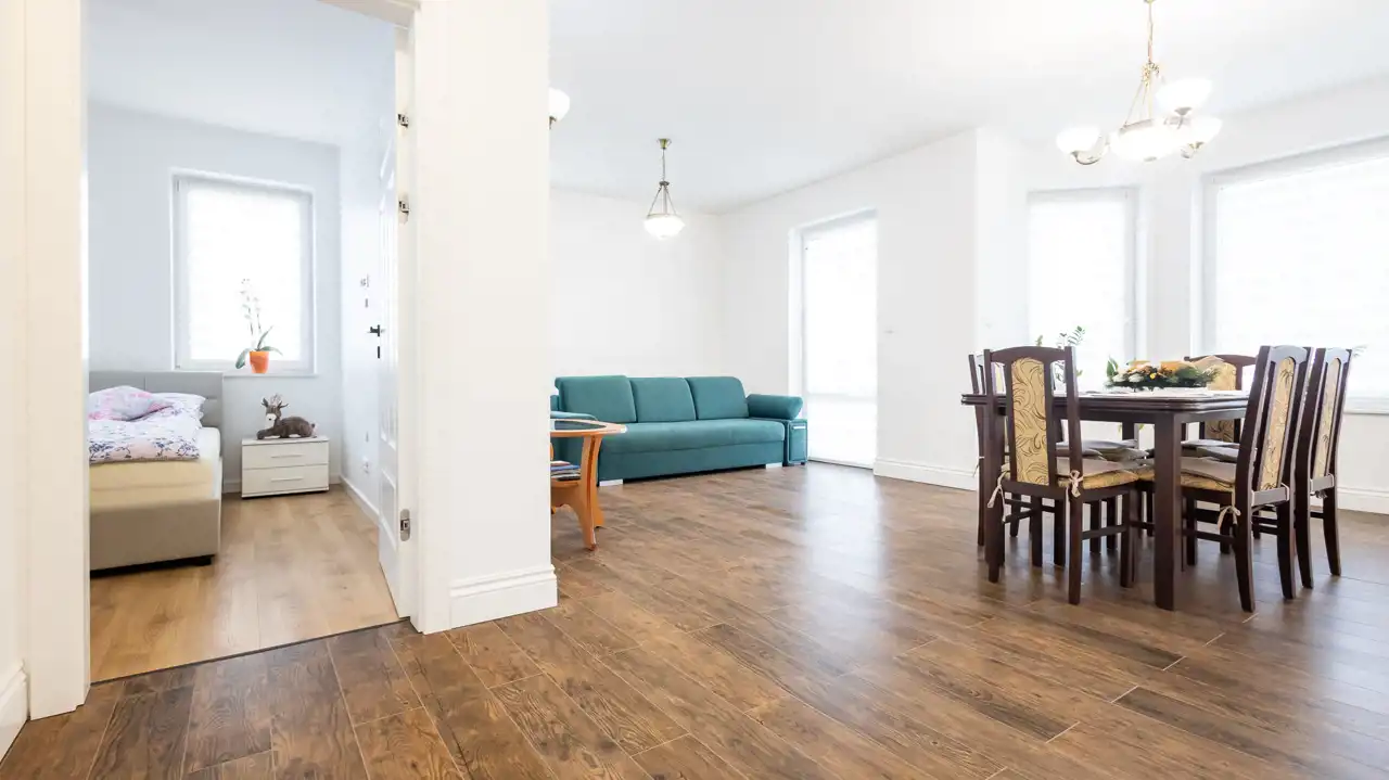 Pokoje gotowe do zamieszkania z położonymi na podłogach panelami.