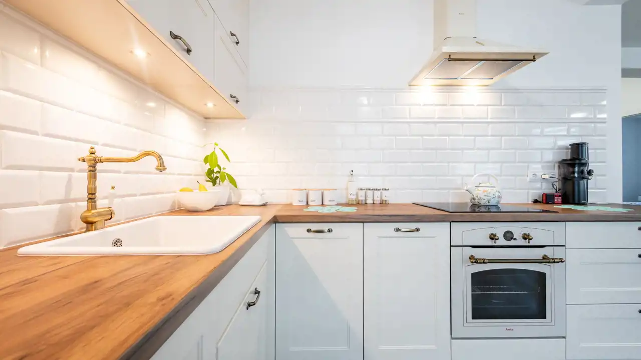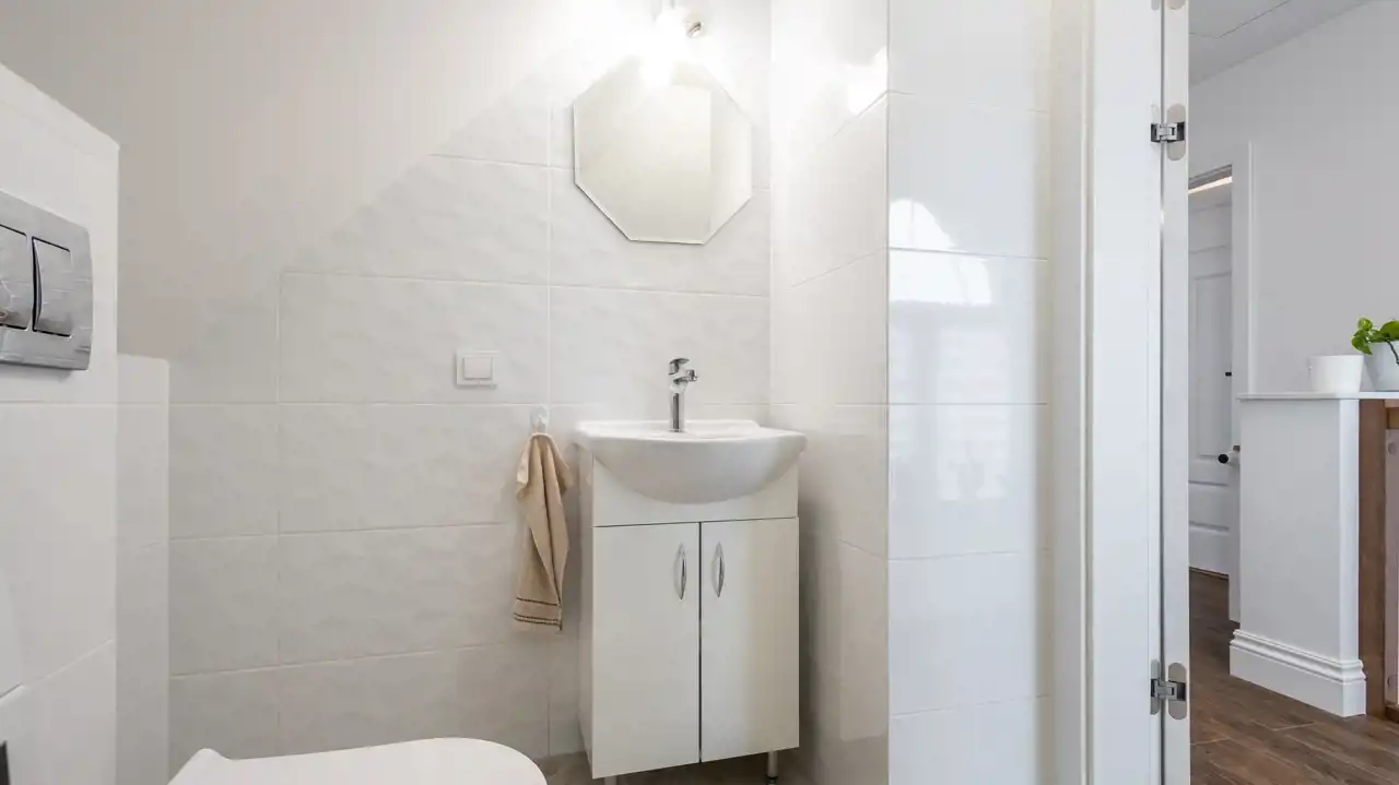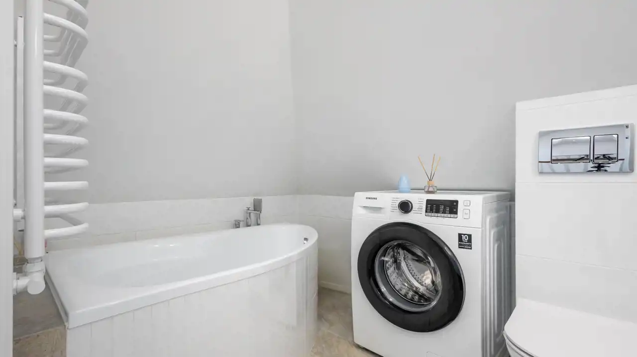Kuchnia i łazienki zostały wykończone i wyposażone.