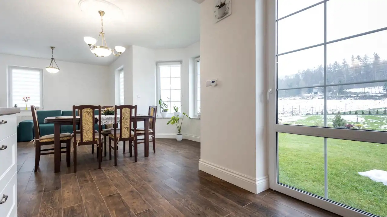 - duży, przestronny salon z wyjściem na taras i do ogrodu,