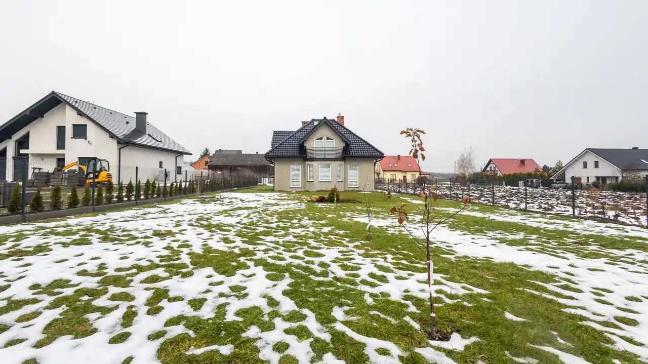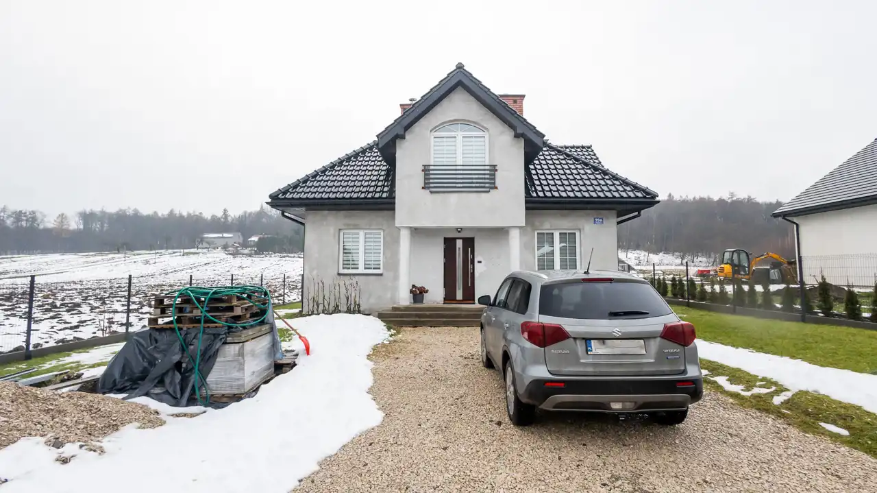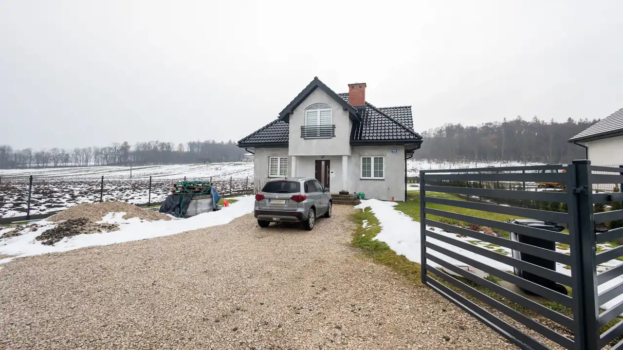 Dom oddany do użytku w 2023 roku, wybudowany z porothermu, ocieplony oraz położona siatka z klejem-pozostaje do położenia tynk dekoracyjny, dach pokryty dachówką ceramiczną.Powierzchnia całkowita domu wynosi 168 m2, powierzchnia użytkowa 108 m2.