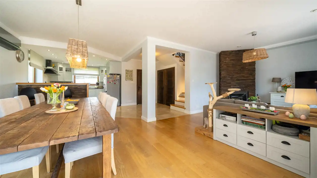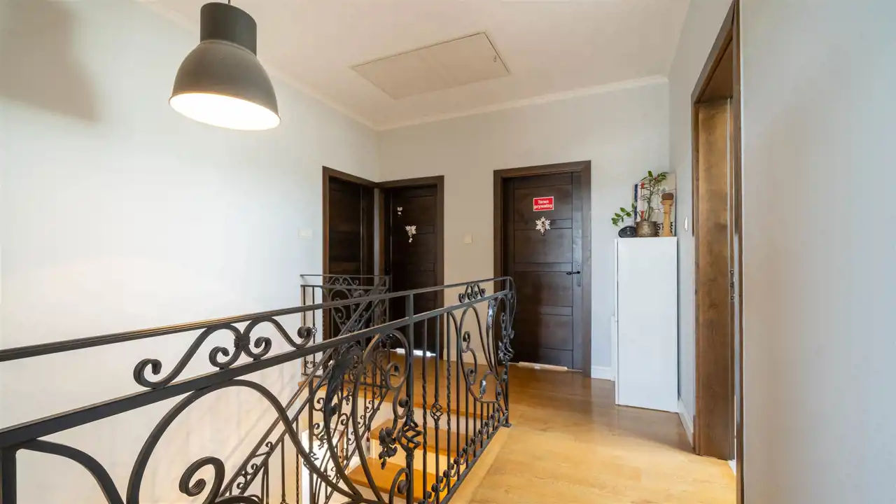 Serdecznie zapraszam na prezentację, warto poznać tę nieruchomość. Na parterze mieści się salon z kominkiem + kuchnia + jadalnia + wyjście na przestronny taras, a także wiatrołap, toaleta, pomieszczenie pod schodami, kotłownia, pralnia, zrzut na pranie. Na pierwszym piętrze do dyspozycji mieszkańców są 4 duże przestronne pokoje, garderoba oraz łazienka z wanną, prysznicem i toaletą.