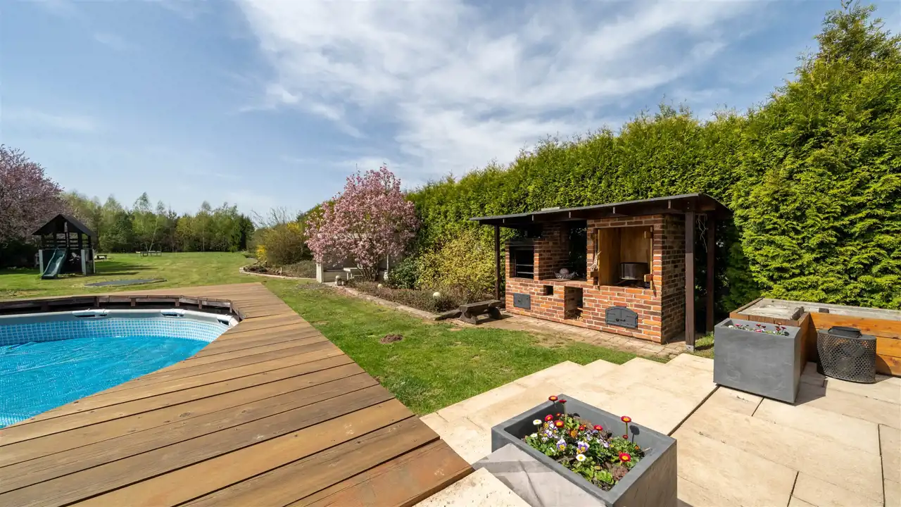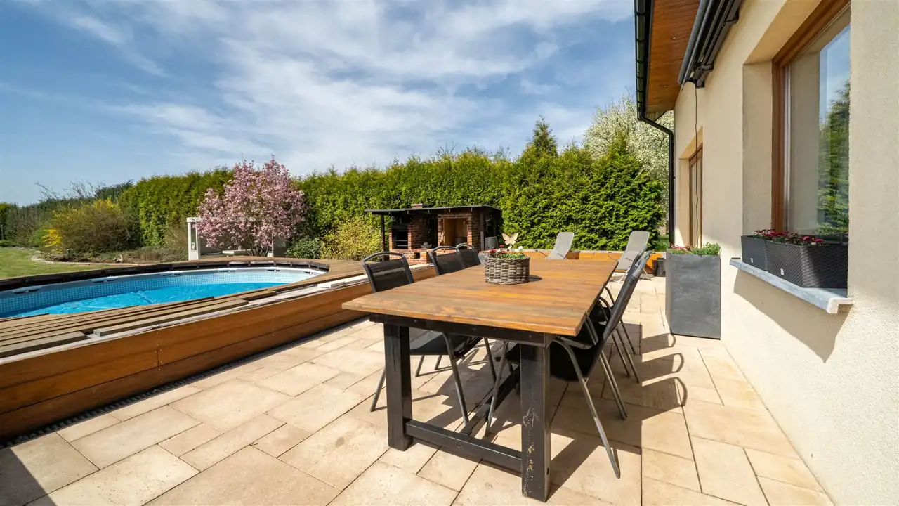- na zewnątrz basen stelażowy