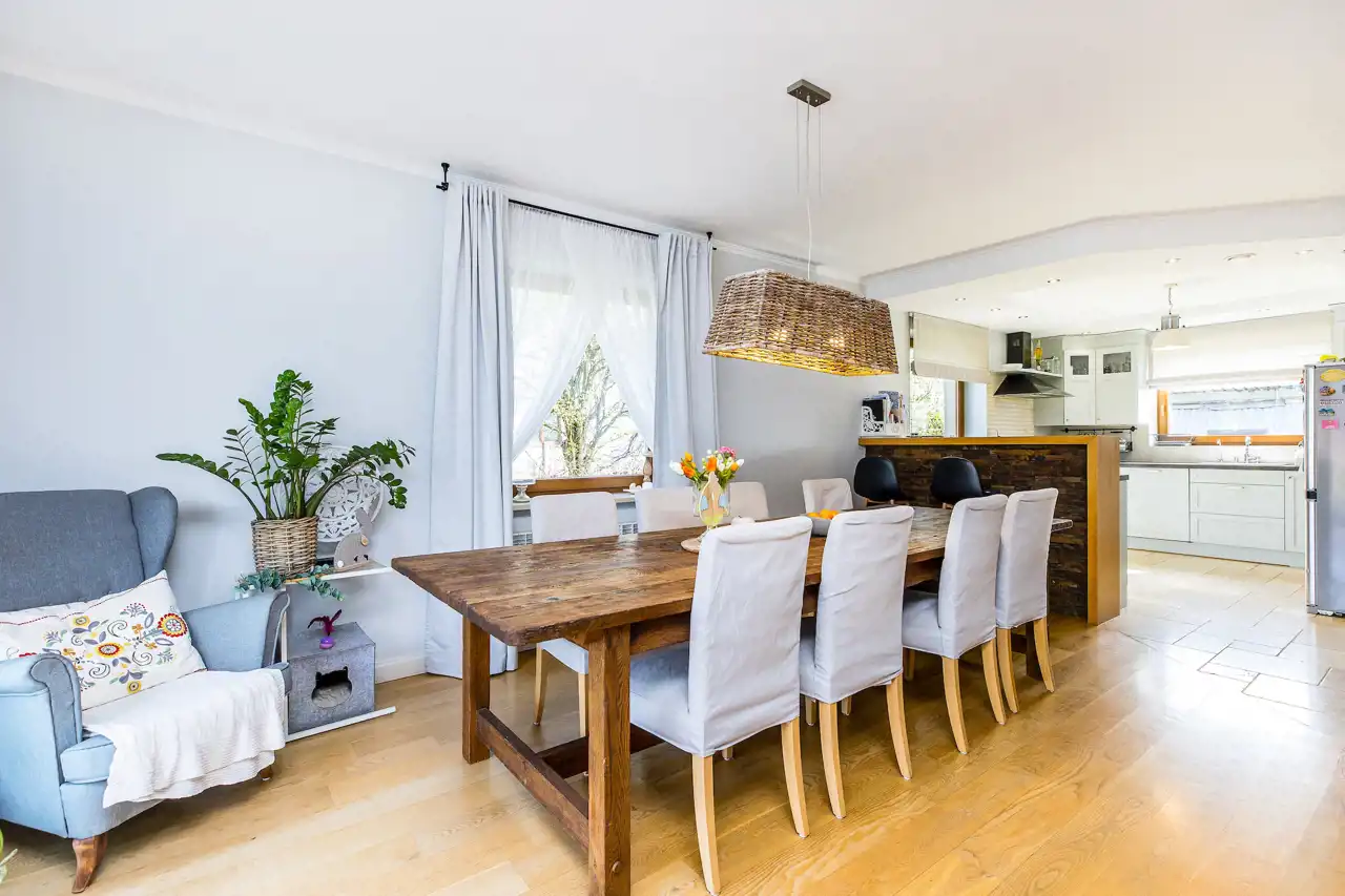 przestronny salon z jadalnią,