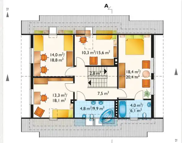 Dodatkowa przestrzeń na strychu – możliwość wygodnego poruszania się w pozycji stojącej.