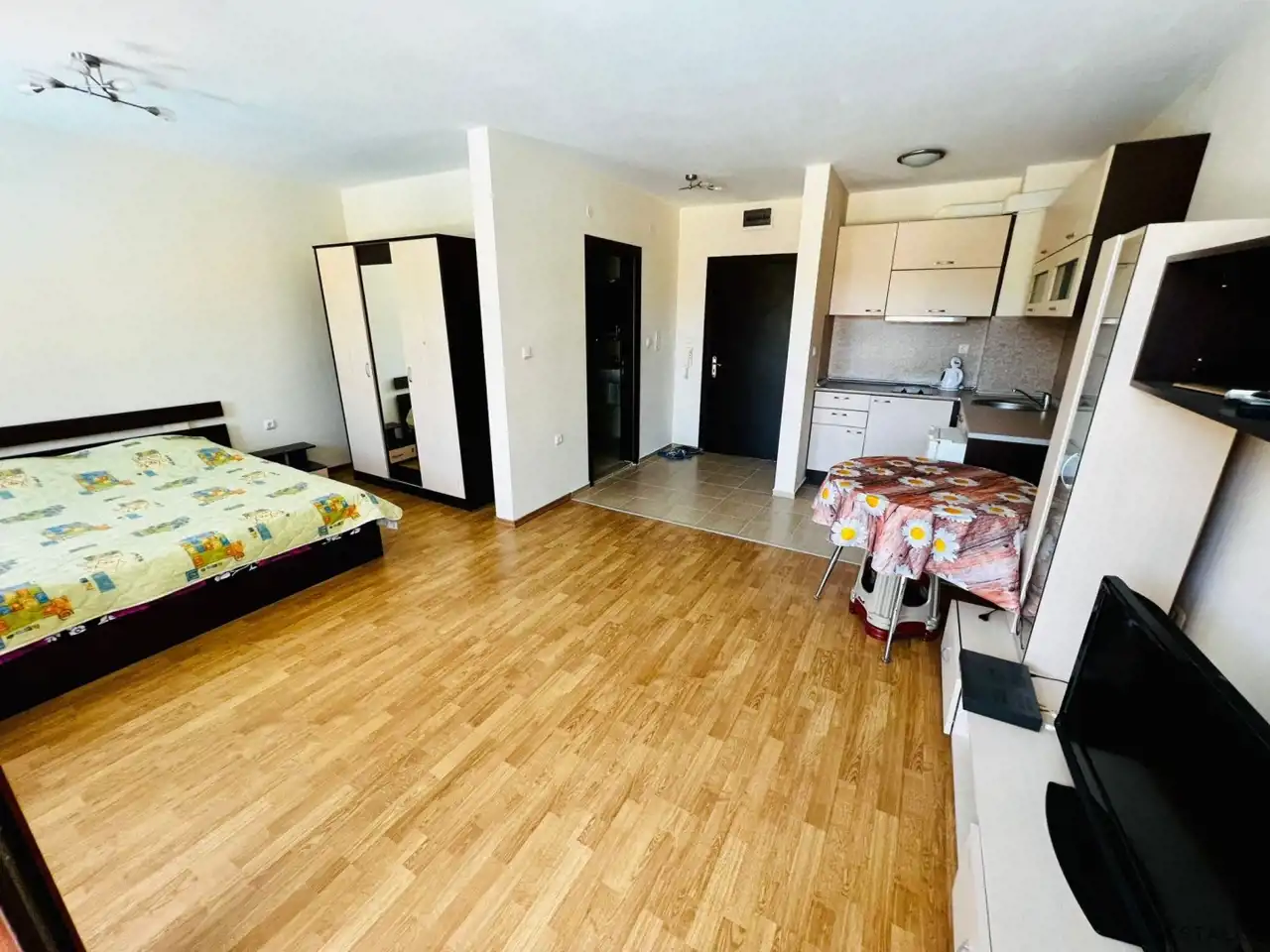 Zapraszamy do zapoznania się z atrakcyjną ofertą pięknego i jasnego studia, położonego zaledwie 500m od pięknych plaż najsłynniejszego kurortu w Bułgarii - Słonecznego Brzegu. Studio znajduje się na drugim piętrze, o powierzchni 52 mkw. Studio wyremontowane i w pełni wyposażone, posiada wspaniały i duży balkon z widokiem na basen. Kawalerkę można przerobić na mieszkanie dwupokojowe. Istnieje również możliwość wynajęcia studia. W kompleksie można mieszkać zarówno przez cały rok, jak i sezonowo.