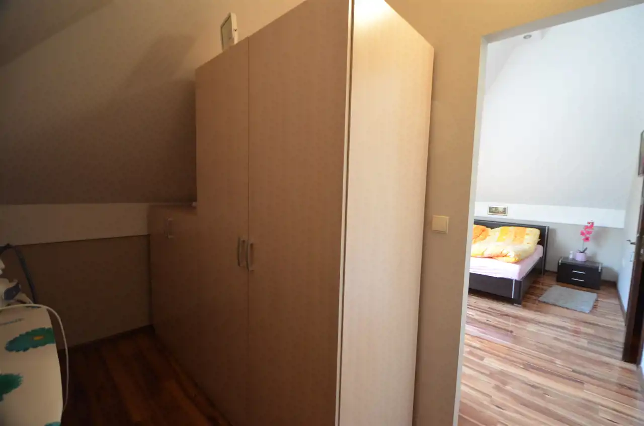 Piętro: hall (4,7m2), pokój I (15,4m2), pokój II (20,64m2), pokój III (16 m2), pokój IV z garderobą (24,6 m2) łazienka (6,9 m2)
