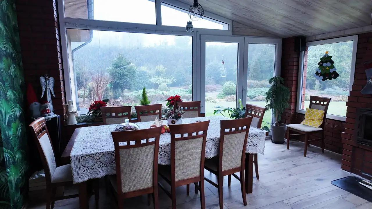 wyjście do ogrzewanego ogrodu zimowego (16 m²) z dodatkowym kominkiem