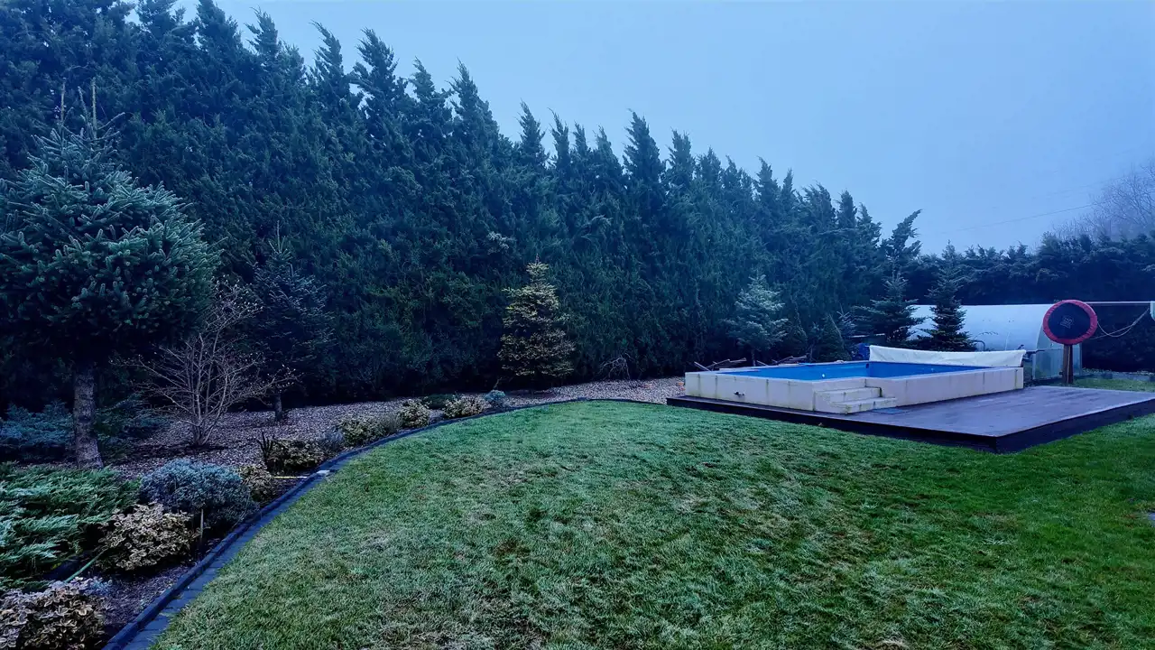 murowany basen 7 × 3 m, ogrzewany pompą ciepła (do 35°C)