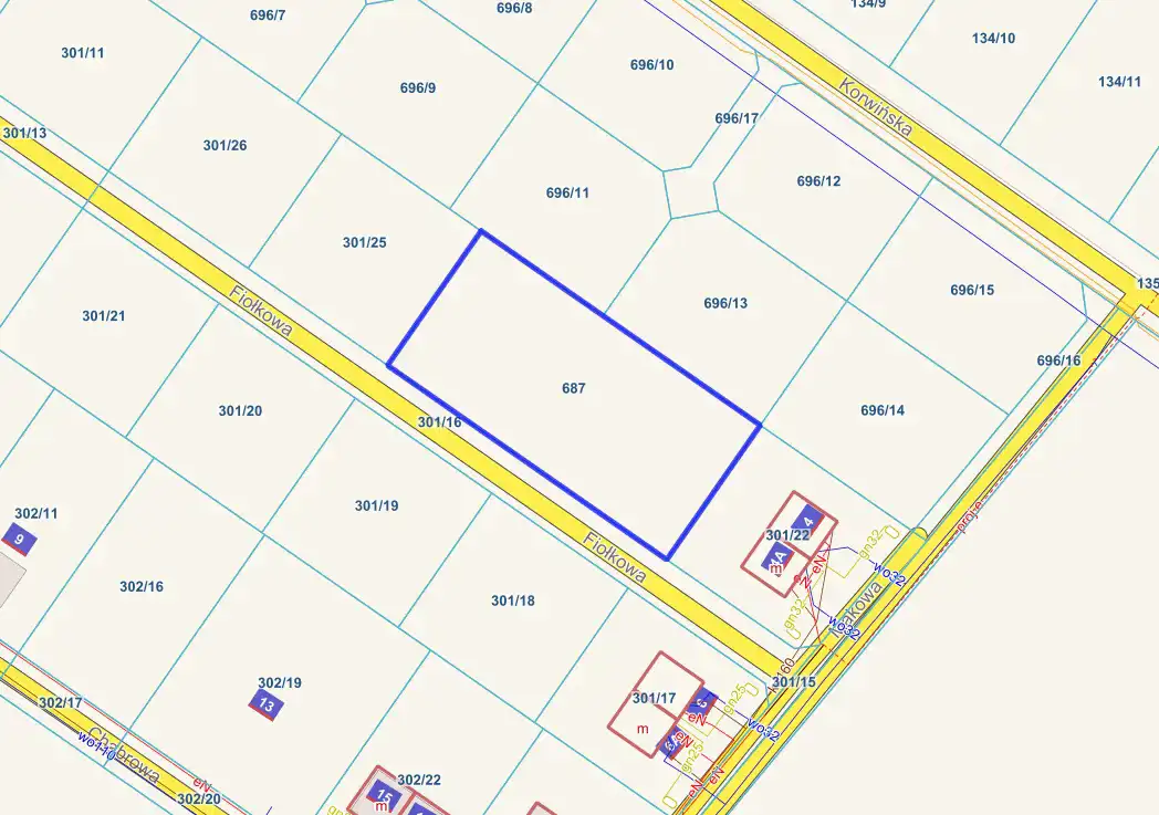 - Media Woda: w ulicy; Kanalizacja: w ulicy; Prąd: w ulicy