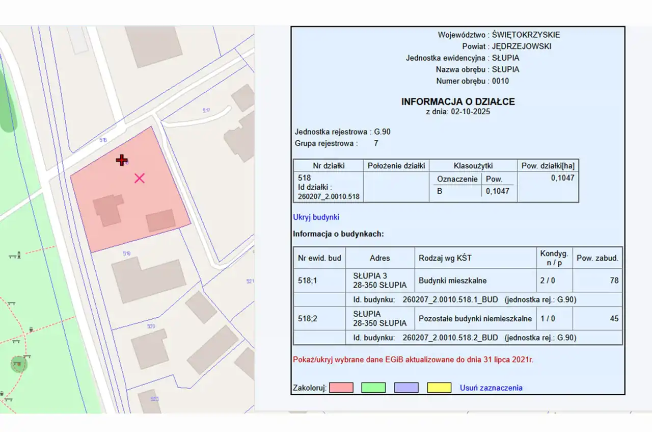 For sale: a property consisting of a residential building – a three-room detached house with a usable area of approximately 99 m², along with an outbuilding and a carport, situated on a 1,047 m² plot located in the village of Słupia (Słupia Jędrzejowska), Jędrzejów County.