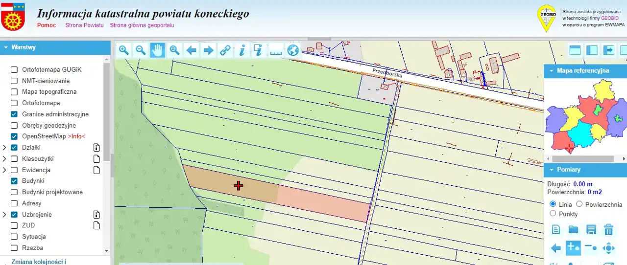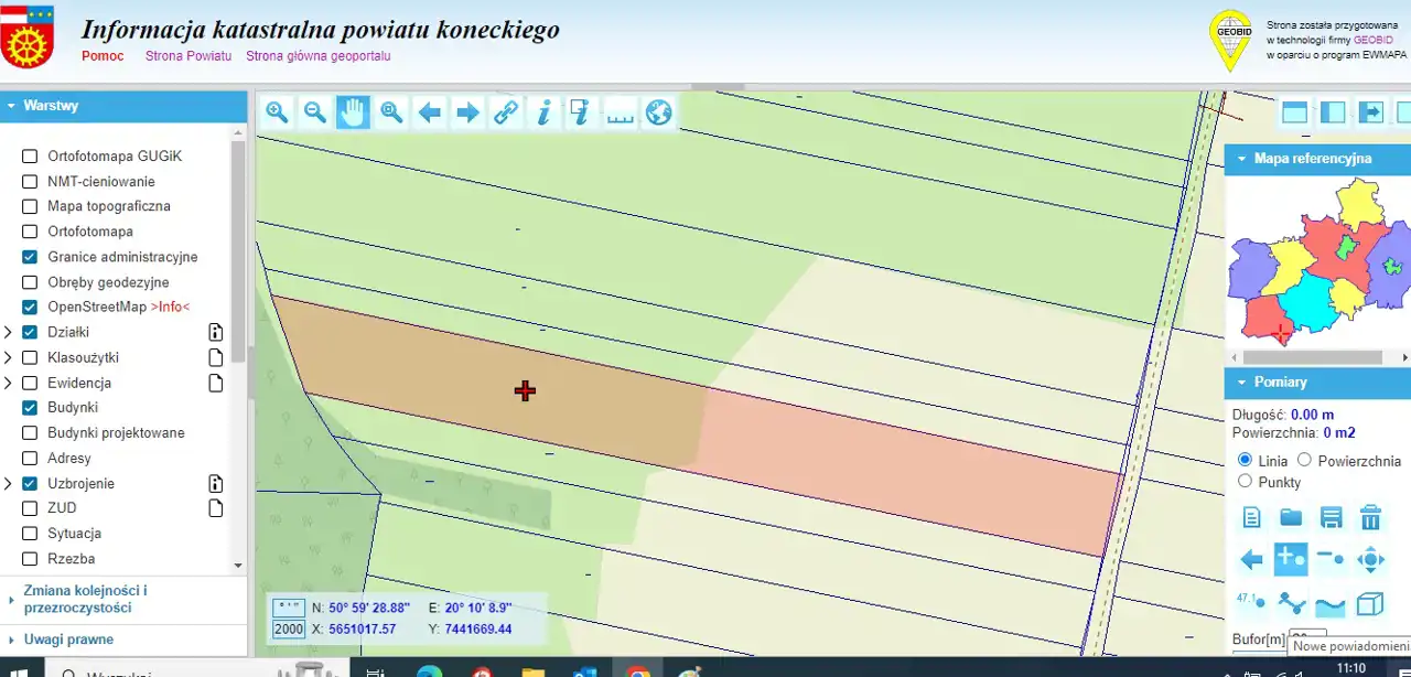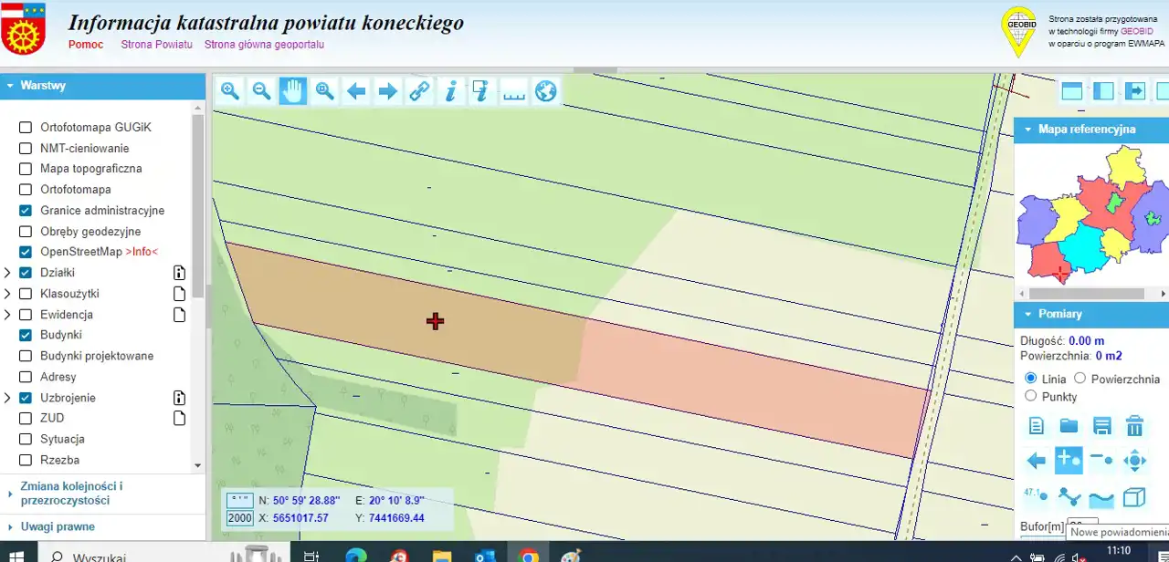 For sale: Plot of land with an area of 9987 sqm, located in Mnin, Słupia Konecka municipality. Access to the plot is via a 5m wide local unpaved road.