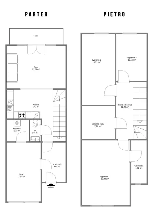 - Poddasze użytkowe o powierzchni ok. 55 m² (po podłodze) – nie wliczone do powierzchni użytkowej, z dużym potencjałem adaptacyjnym