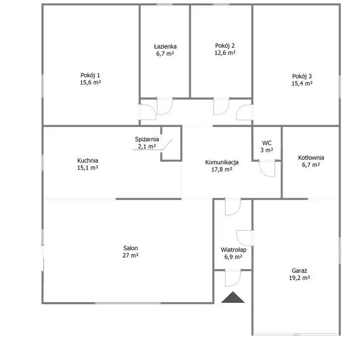 3 pokoje – 15,6 m² / 15,4 m² / 12,6 m² (jeden może pełnić funkcję garderoby)