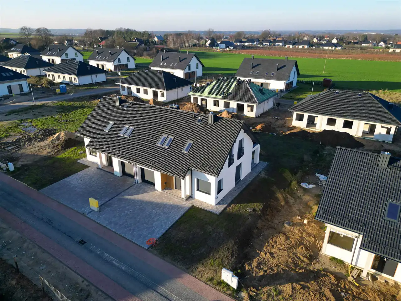 Nowoczesny dom jednorodzinny w zabudowie bliźniaczej w Głobinie przy ulicy Poziomkowej!