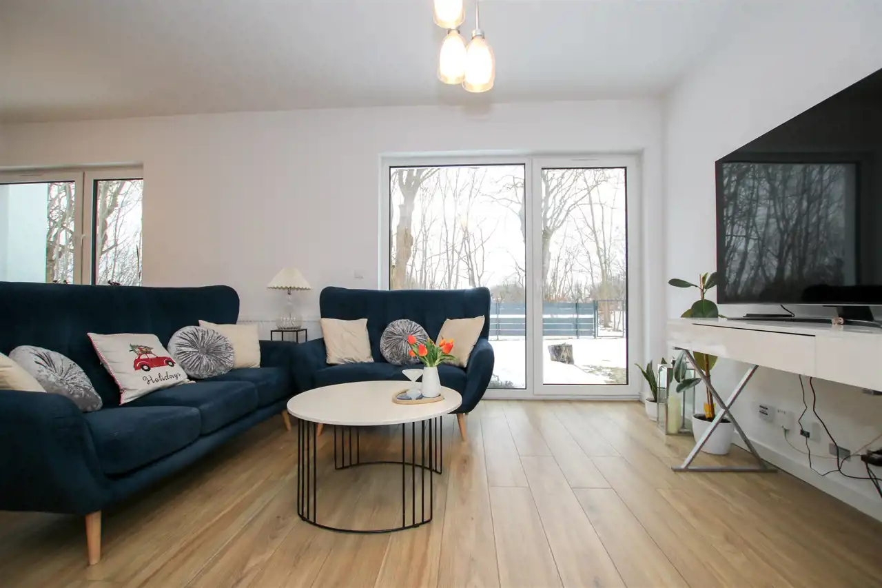 - Bezpośrednie wyjście z prywatnego ogródka przez furtkę na malowniczą ścieżkę spacerową wzdłuż lasu – idealne rozwiązanie dla miłośników natury, spacerów i aktywnego wypoczynku.