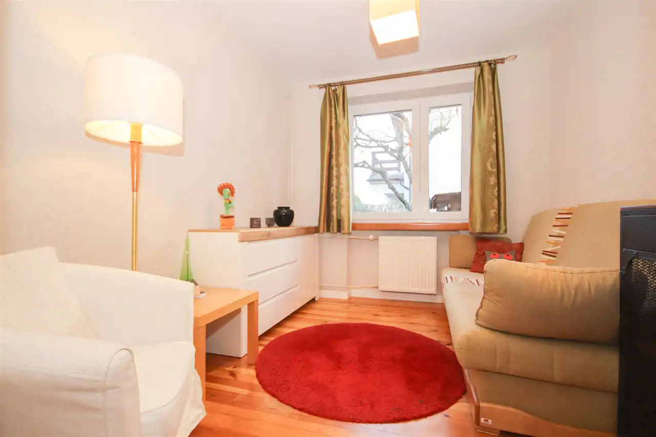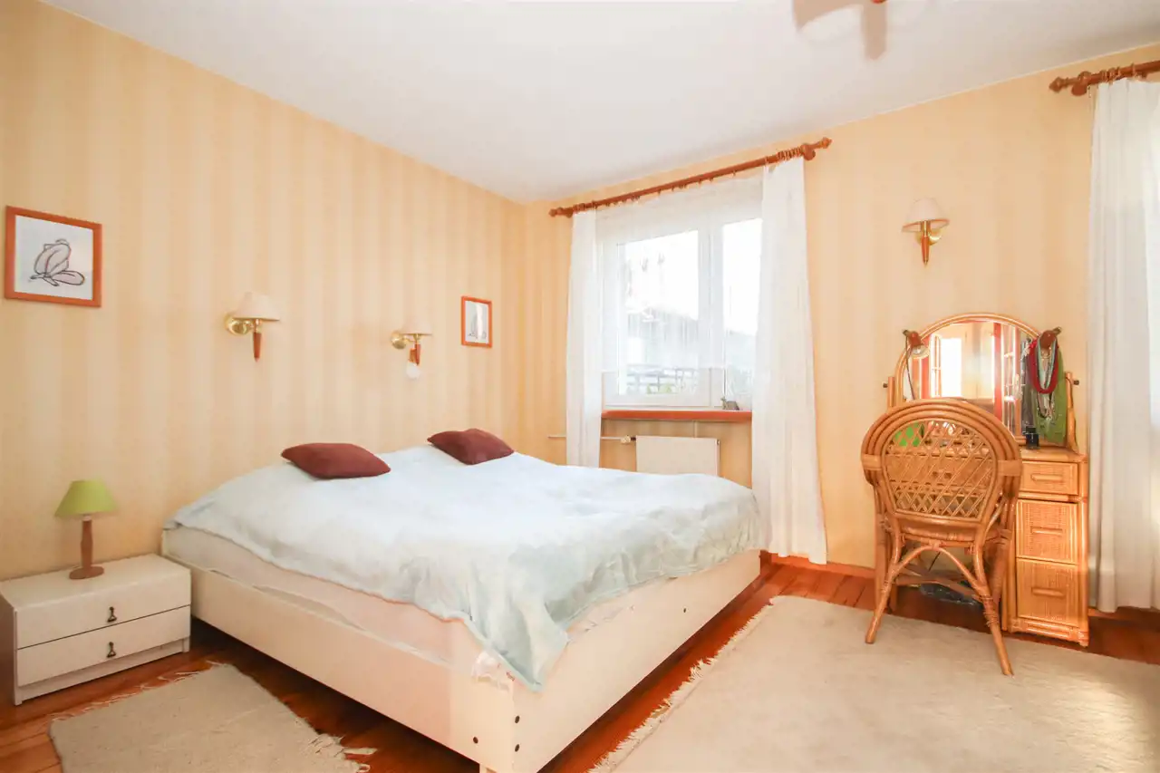 Dom sprzedawany jest z pełnym umeblowaniem widocznym na zdjęciach, co czyni go propozycją idealną dla osób, które chcą wprowadzić się bez dodatkowych nakładów i długiego procesu urządzania.