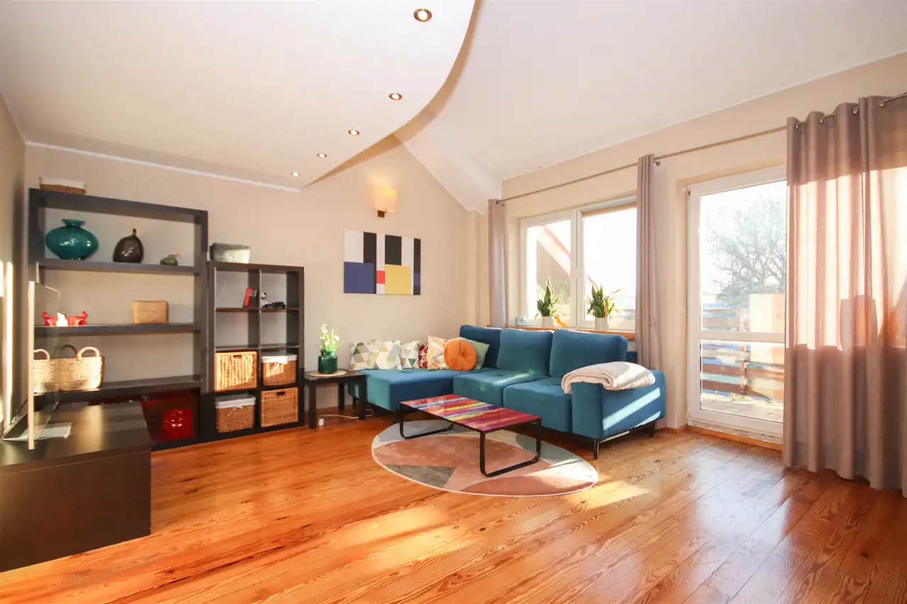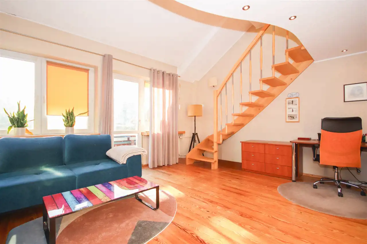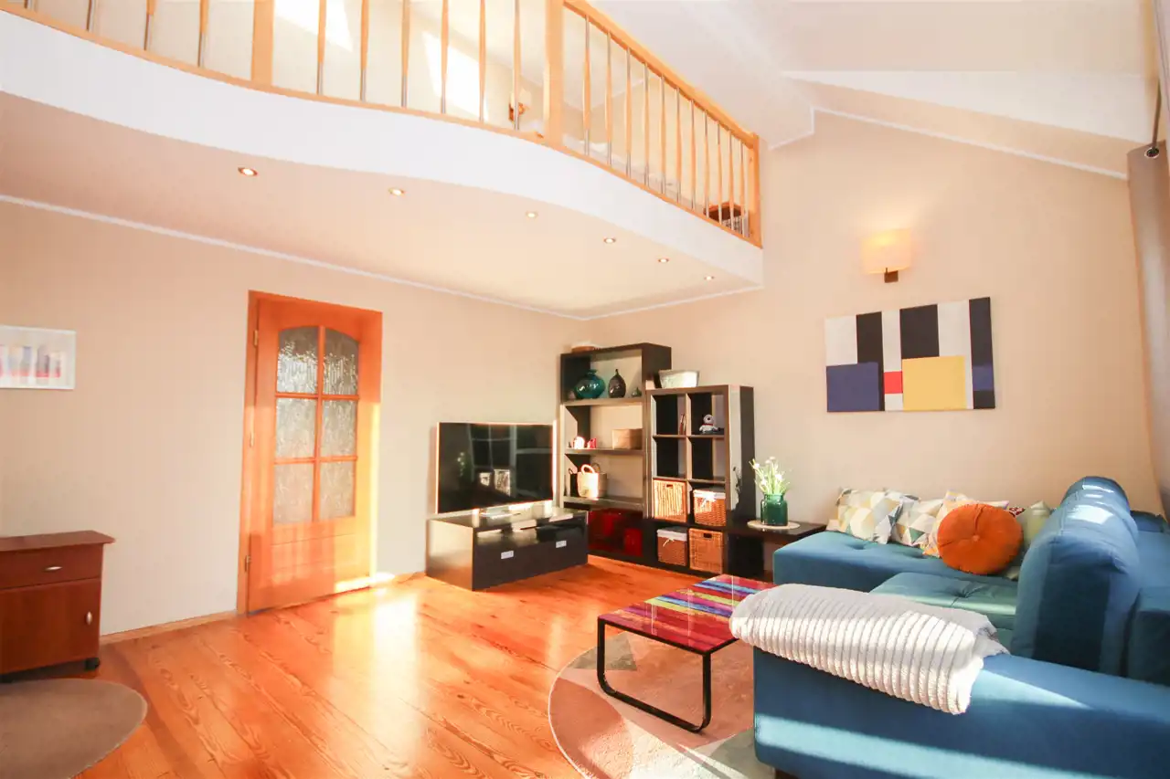 Dodatkowym atutem jest antresola (9,20 m²), z dostępem do pomieszczenia strychowego (ok. 11 m²), które może zostać zaadaptowane na pracownię, biuro, dodatkowy pokój, strefę hobby.