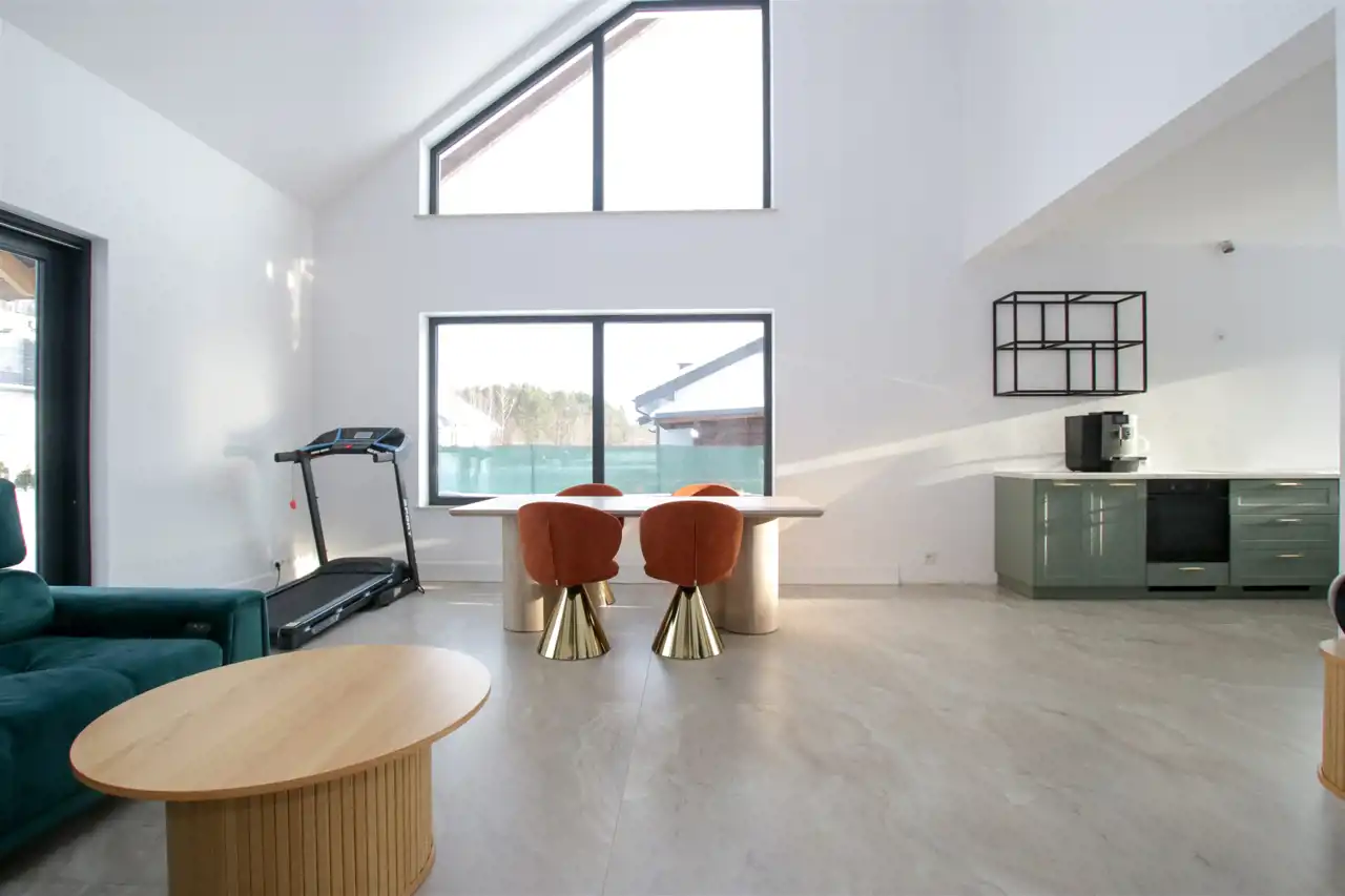 Nieruchomość znajduje się w bezpośrednim sąsiedztwie lasu, wśród rozległych terenów zielonych i urokliwych ścieżek spacerowych, które sprzyjają codziennemu relaksowi, aktywności fizycznej i kontaktowi z naturą. To idealne miejsce dla rodzin, osób pracujących zdalnie oraz wszystkich, którzy cenią ciszę i świeże powietrze.