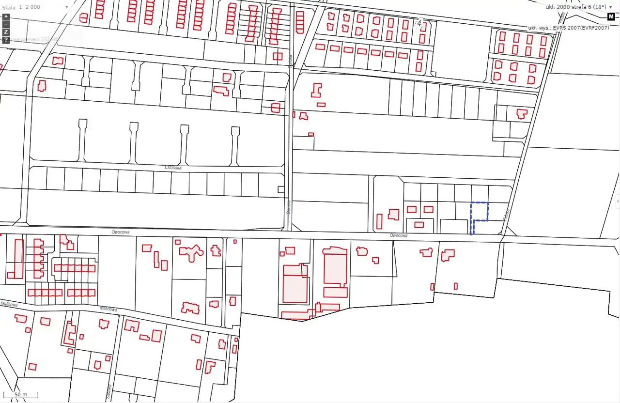 Uzbrojenie: energia elektryczna, wodociąg, kanalizacja sanitarna i gaz w ulicy Owocowej. Warunki wykonania przyłączy należy uzgodnić z właściwymi instytucjami branżowymi.