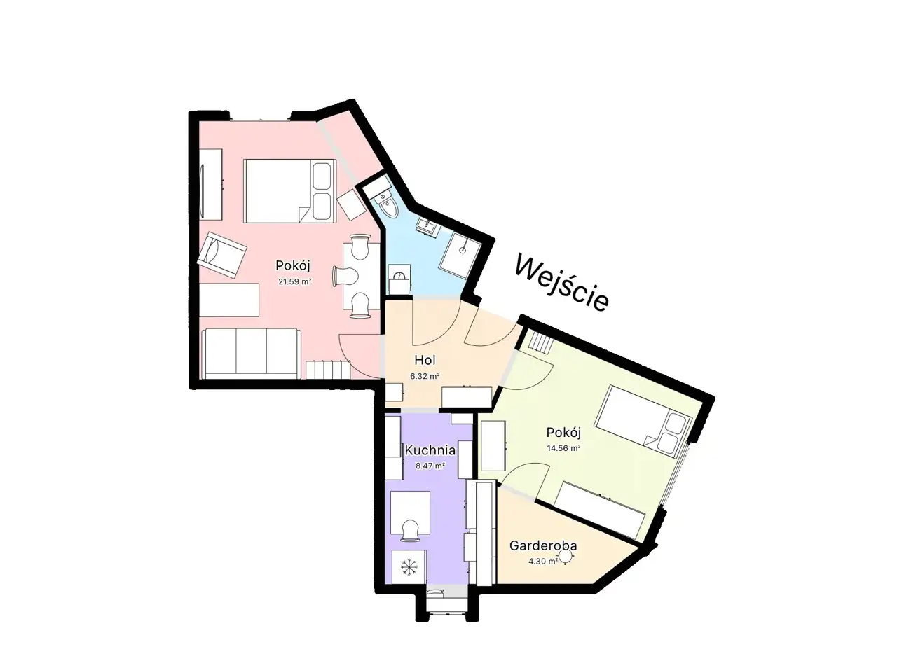 - Charakterystyka mieszkania 61.64 m2, 2 pokoje