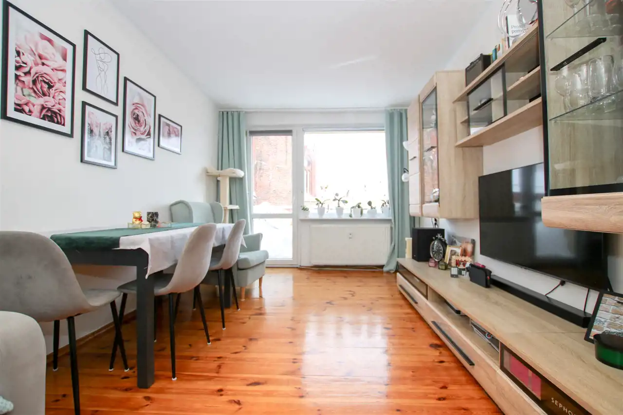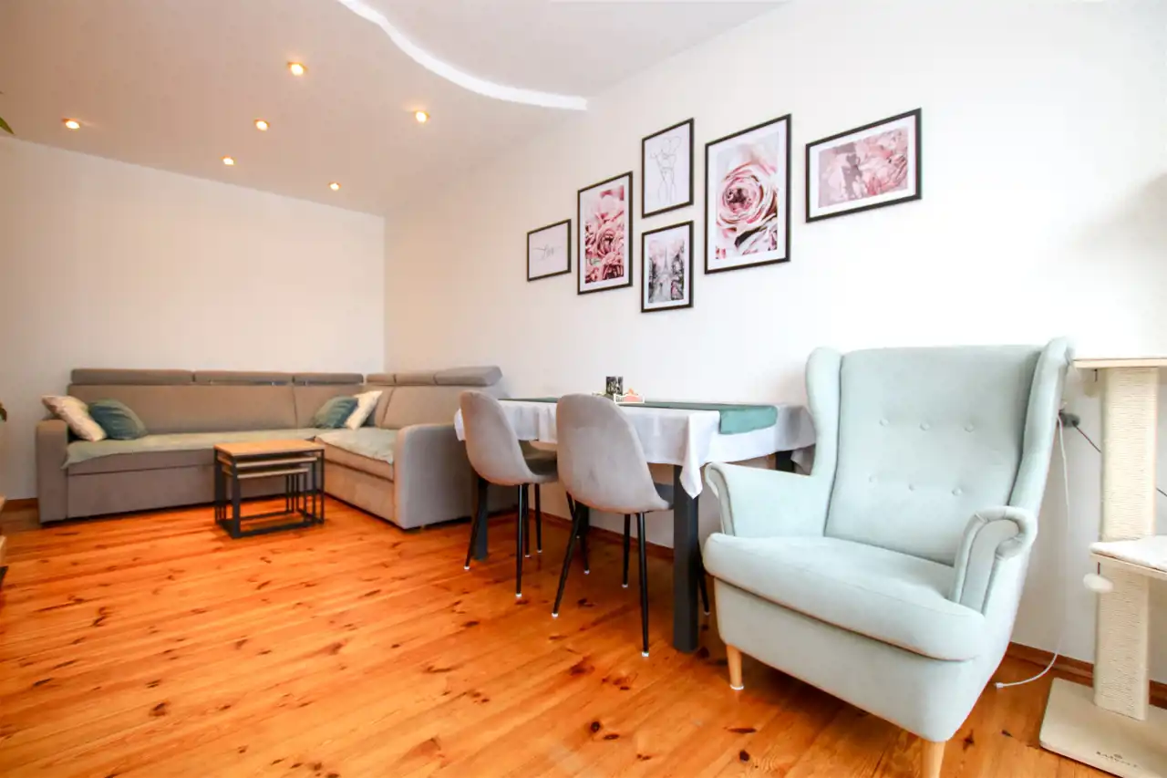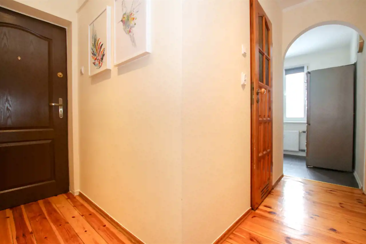 Mieszkanie jest dwustronne, słoneczne i dobrze rozplanowane – każdy metr został wykorzystany w przemyślany sposób. Już od wejścia czuć tu porządek i komfort. Wnętrze jest po odświeżeniu, utrzymane w jasnych barwach, dzięki czemu stanowi idealną bazę zarówno dla minimalistów, jak i osób lubiących bardziej wyrazisty styl.