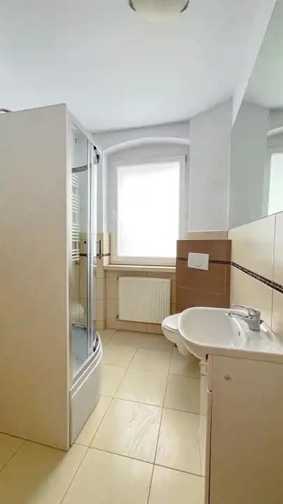 Mieszkanie o powierzchni 68 m2, składa się z trzech przestronnych pokoi, dużej kuchni z wydzielona spiżarką z oknem, łazienki z w.c. doświetlonej oknem, przestronnego przedpokoju z zabudowanymi szafami. Do mieszkania przynależy duża piwnica o powierzchni 11,80 m2.