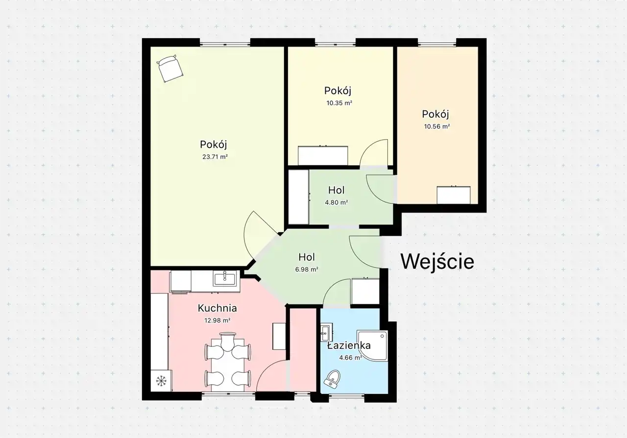 - Charakterystyka mieszkania 79.8 m2, 3 pokoje