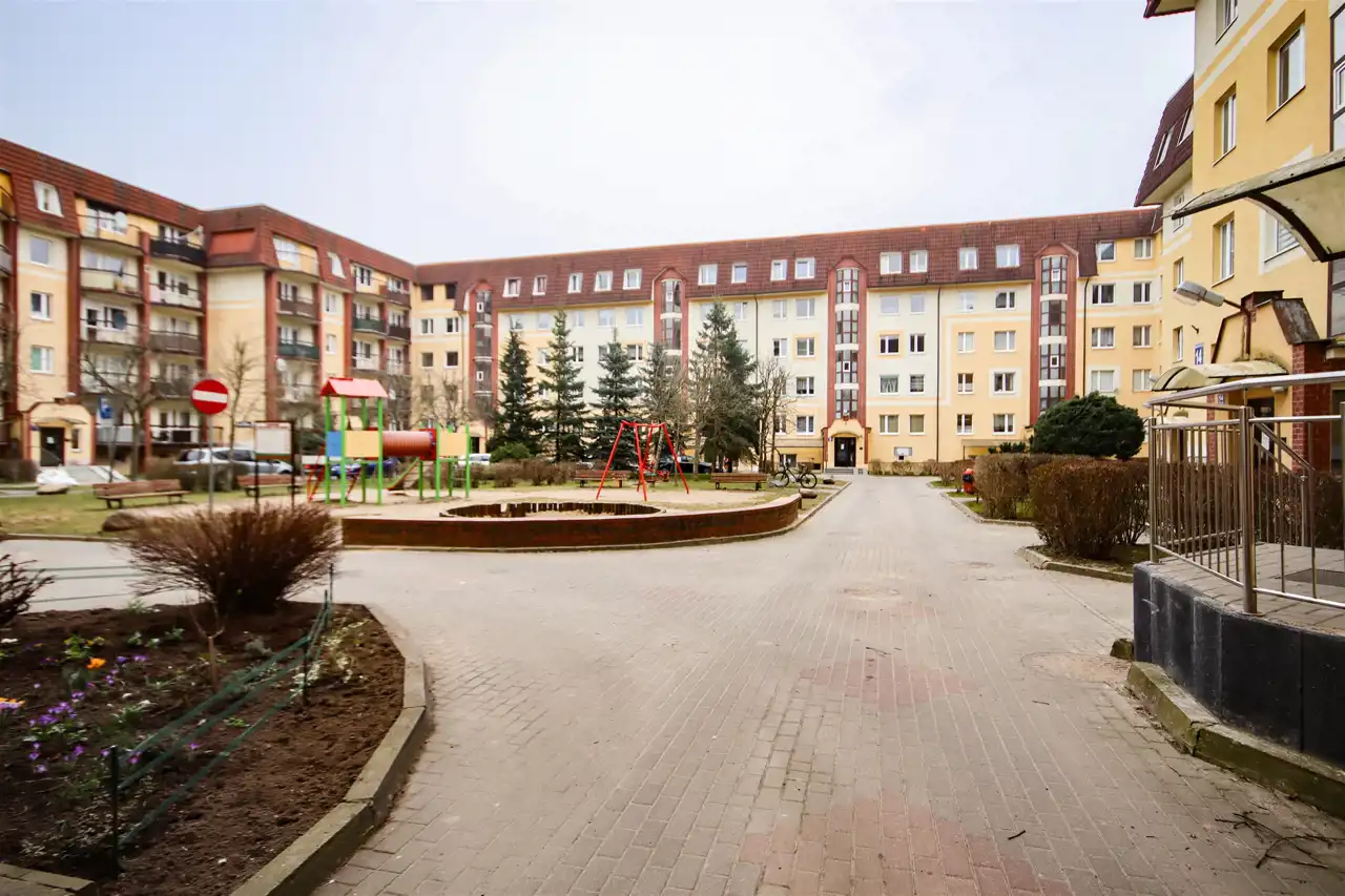 Bezpośrednio przy budynku znajduje się plac zabaw, a także liczne ogólnodostępne miejsca parkingowe, co znacząco podnosi komfort codziennego życia mieszkańców.