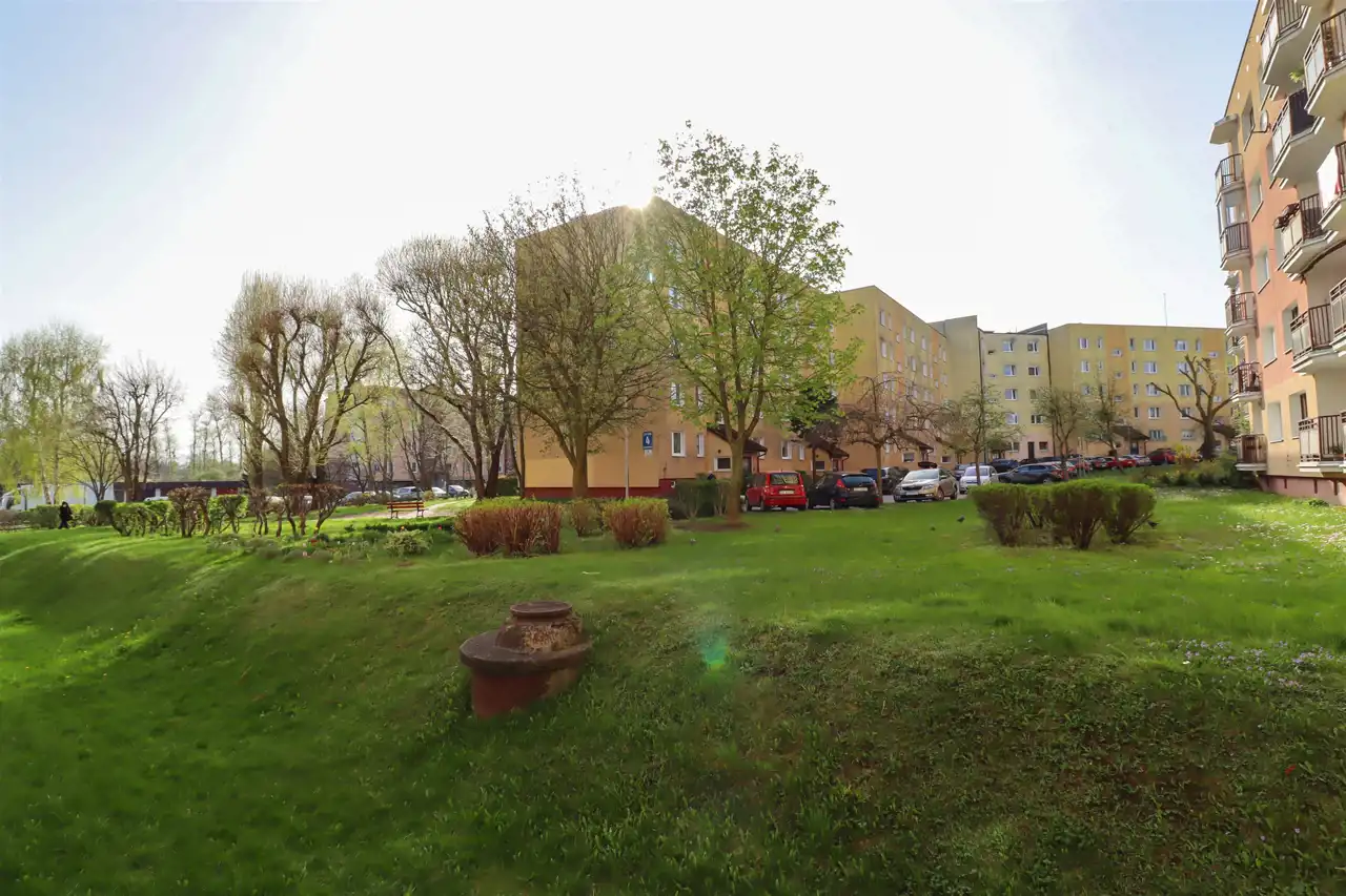 Lokal mieszkalny usytuowany na parterze, czteropiętrowego bloku w idealnej lokalizacji – przy ulicy Kotarbińskiego w Słupsku. Mieszkanie znajduje się w estetycznym kompleksie osiedlowym, pośród terenów zielonych w pobliżu, którego znajdują się liczne sklepy i punkty usługowe. Drzwi wejściowe na klatkę schodową zabezpieczone domofonem. Do mieszkania przynależy piwnica. Ogólnodostępne miejsca parkingowe wokół budynku.