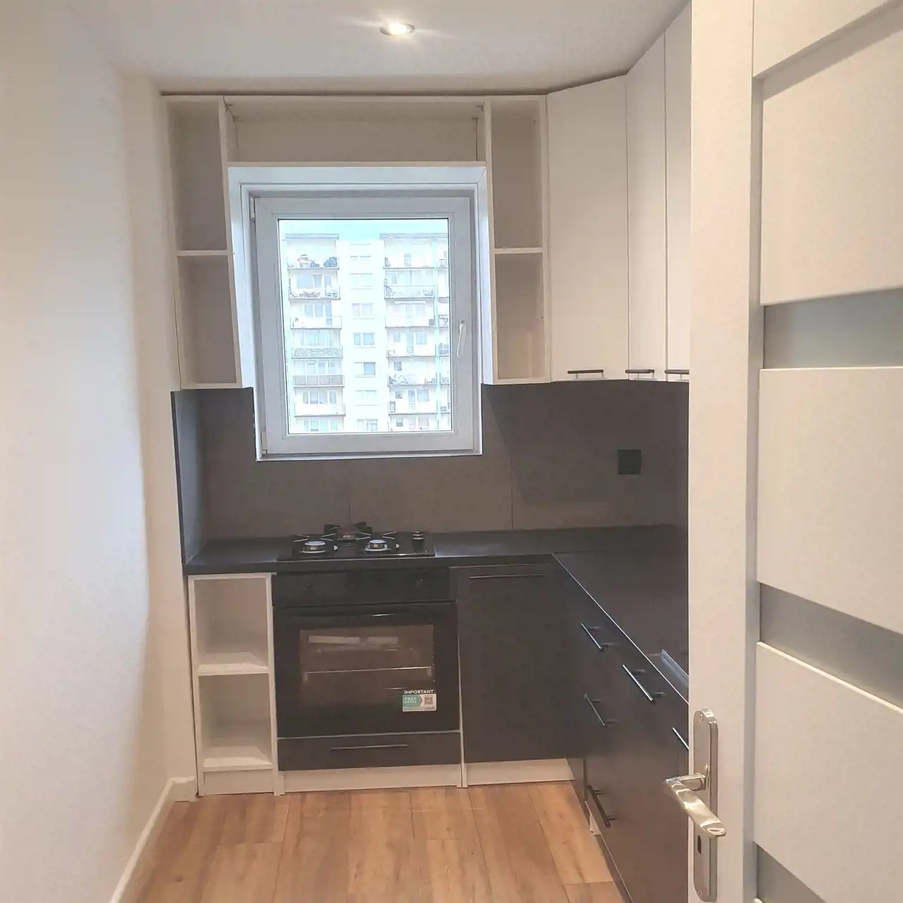 W cenie mieszkania pozostają nowe meble kuchenne wykonane na indywidualne zamówienie oraz sprzęty agd widoczne na zdjęciach, takie jak okap, zlew, płyta indukcyjna, lodówka oraz piekarnik w zabudowie.