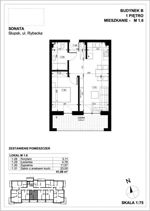 - Charakterystyka mieszkania 41.96 m2, 2 pokoje