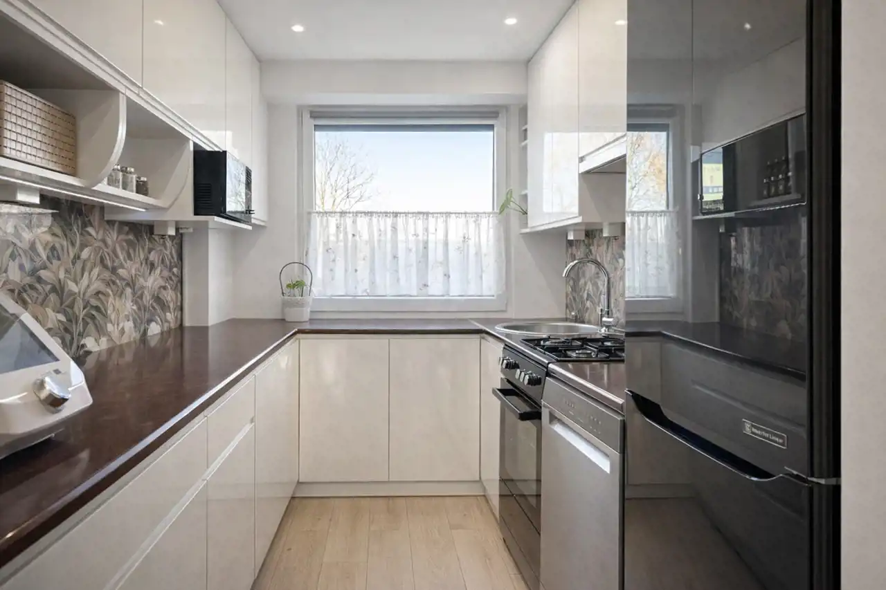 - Jasna kuchnia z oknem.