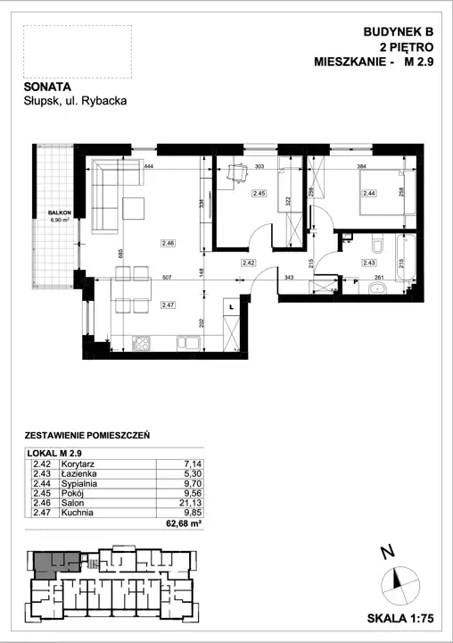 - Powierzchnia: 62,68 m²