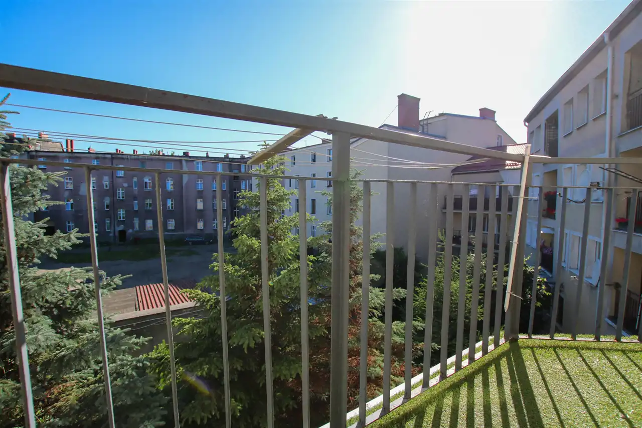Mieszkanie składa się z trzech osobnych, jasnych pokoi – salonu z wyjściem na balkon oraz dwóch sypialni. Każde z pomieszczeń jest dobrze doświetlone dzięki dużym oknom i zachowane w ciepłej, neutralnej kolorystyce, co nadaje wnętrzom przyjemny klimat.
