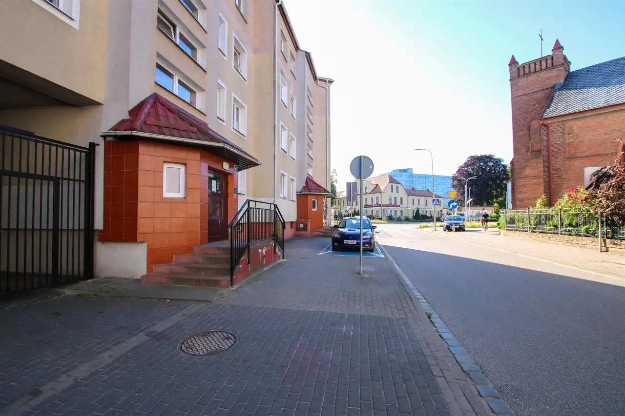 Do mieszkania przynależy piwnica, co zapewnia dodatkowe miejsce do przechowywania. Przed budynkiem znajdują się ogólnodostępne miejsca parkingowe. Budynek jest zadbany, a okolica spokojna i dobrze skomunikowana – w pobliżu znajdują się sklepy, przystanki autobusowe, punkty usługowe oraz tereny zielone.