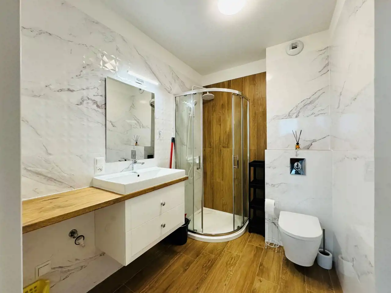 Do wynajęcia dwupokojowe mieszkanie o powierzchniach od 45,21 m2 położone w wybudowanej w 2022 roku kamienicy przy ul. Kopernika w Słupsku. W skład lokalu chodzą: pokój dzienny z aneksem kuchennym (24,88 m2), pokój (8,62 m2), łazienka z w.c. (5,24 m2 ) oraz korytarz. Rozkład mieszkania przedstawiony jest na jednym ze zdjęć.